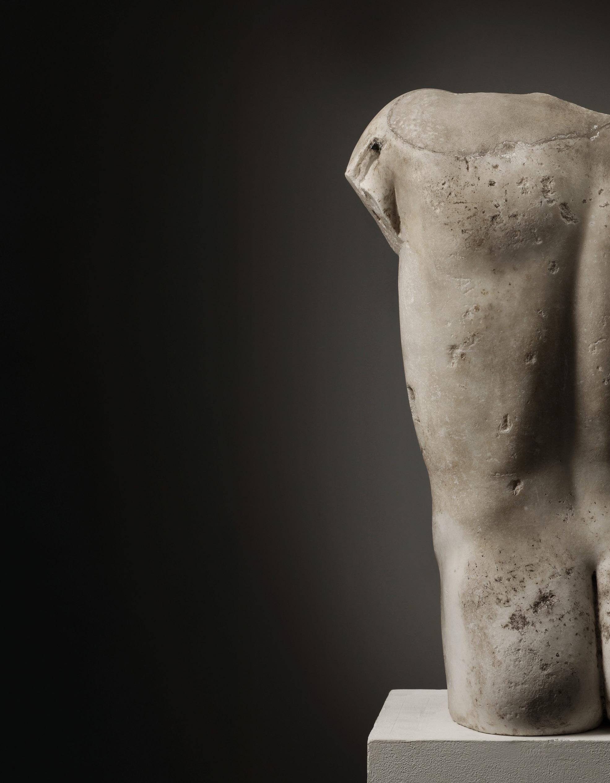 An undated photograph in the archive of the Classical archaeologist Paul Arndt (b. 1865-d. 1937) (since 1894 assistant to Heinrich Brunn and subsequently to Adolf Furtwängler of Munich University; since the late 1890s also active as an art dealer in Munich) depicts our torso in a reconstruction as Ganymede with an eagle. Formerly American priv. coll. F. W. R., New York, probably Frederick W. Richmond (b. 1923-d. 2019); consigned to Christie‘s, New York, 15 December 1992, lot. 29 and Sotheby‘s, New York, 4 December 1994, lot 134. Thereafter priv. coll. Barcelona; acquired from the last auction sale mentioned and consigned in the English art market, 2018.