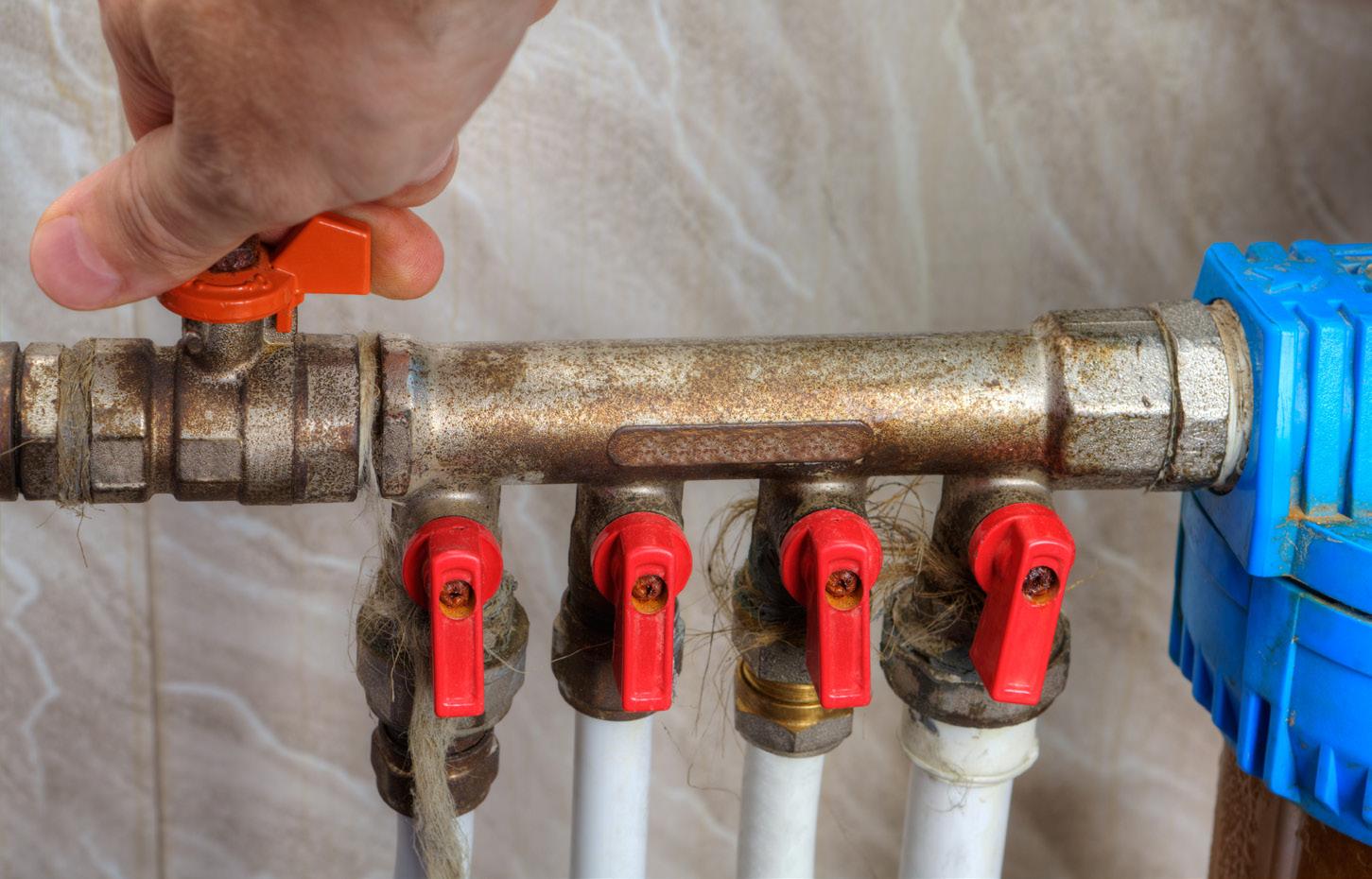 • Turn off the main water supply or shut off supply valves to toilets, sinks, and the ice maker.