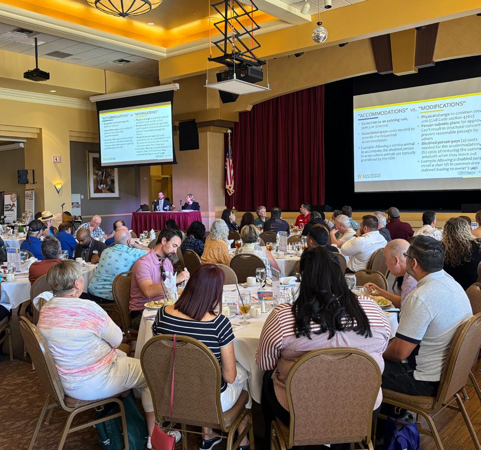 CAI’s annual Advocacy Week will be held from April 22-24, 2025. This is the time that CAI educates California lawmakers about bills that would affect associations, both positively and negatively. CAI representatives will have the opportunity to advocate directly to lawmakers or their staff. This is also a great opportunity to meet industry peers from all over the state. Advocacy Week will be held in person in Sacramento but anyone who cannot be there in person can attend Virtual Bill Briefing and Legislative Meetings on Wednesday, April 23, 2025, via Zoom. If you would like to attend Advocacy Week, you can register at: https://caiclac.com/ advocacy-week/.