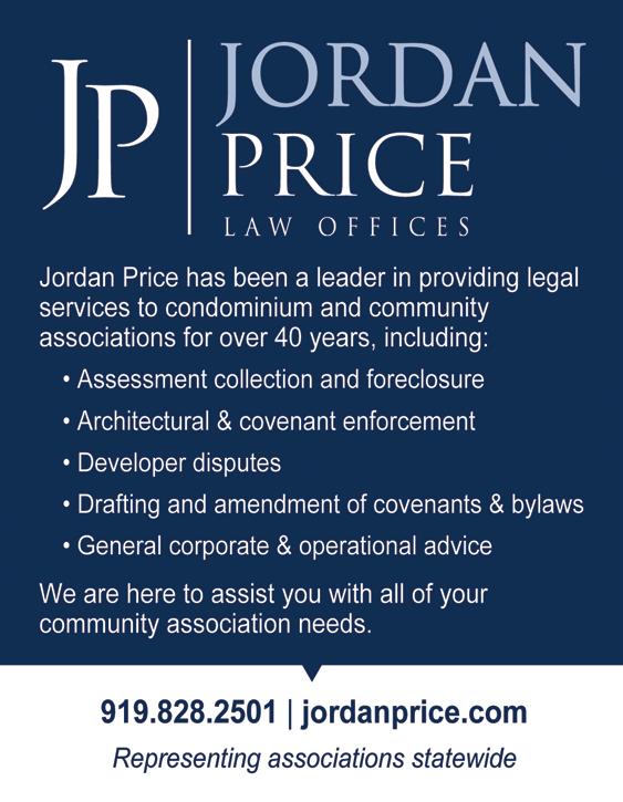 DELAWARE | MARYLAND | NEW JERSEY | NEW YORK NORTH CAROLINA | PENNSYLVANIA | VIRGINIA | WASHINGTON, D.C. Guidance on every aspect of Community Association Law Truist Bank, Member FDIC and Equal Housing Lender Loans and lines of credit are subject to credit approval. ©2021 Truist Financial Corporation. All rights reserved. Truist.com/AssociationServices Specialized lending and financial solutions for associations with Truist Association Services Tanya Cannaday VP / Relationship Manager 704-954-2135 Tanya.Cannaday@Truist.com we know you are busy. let us manage your community trees! www.leaflimb.com