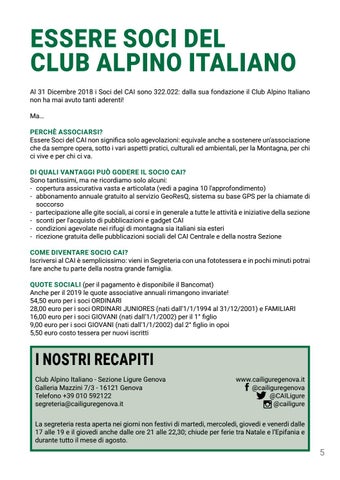 i nostri recapiti Club Alpino Italiano - Sezione Ligure Genova Galleria Mazzini 7/3 - 16121 Genova Telefono +39 010 592122 segreteria@cailiguregenova.it