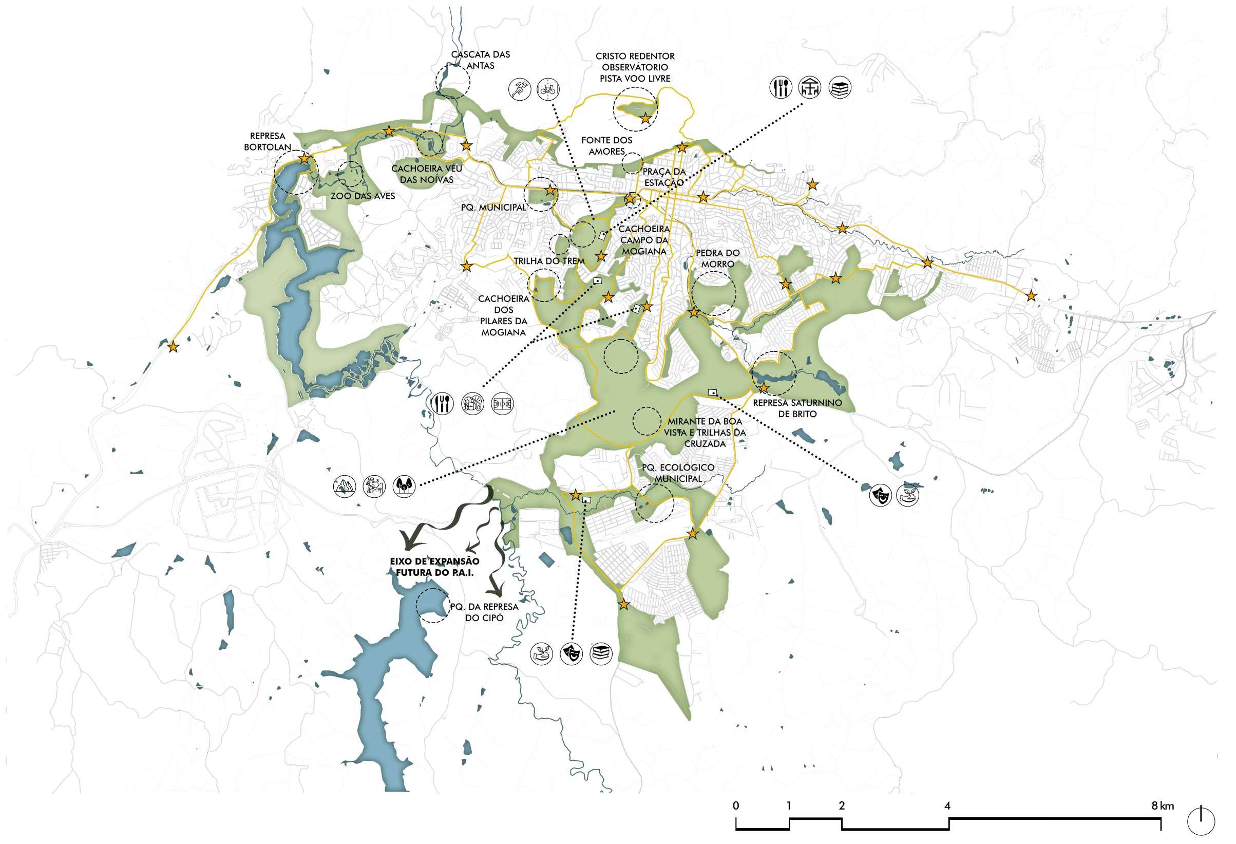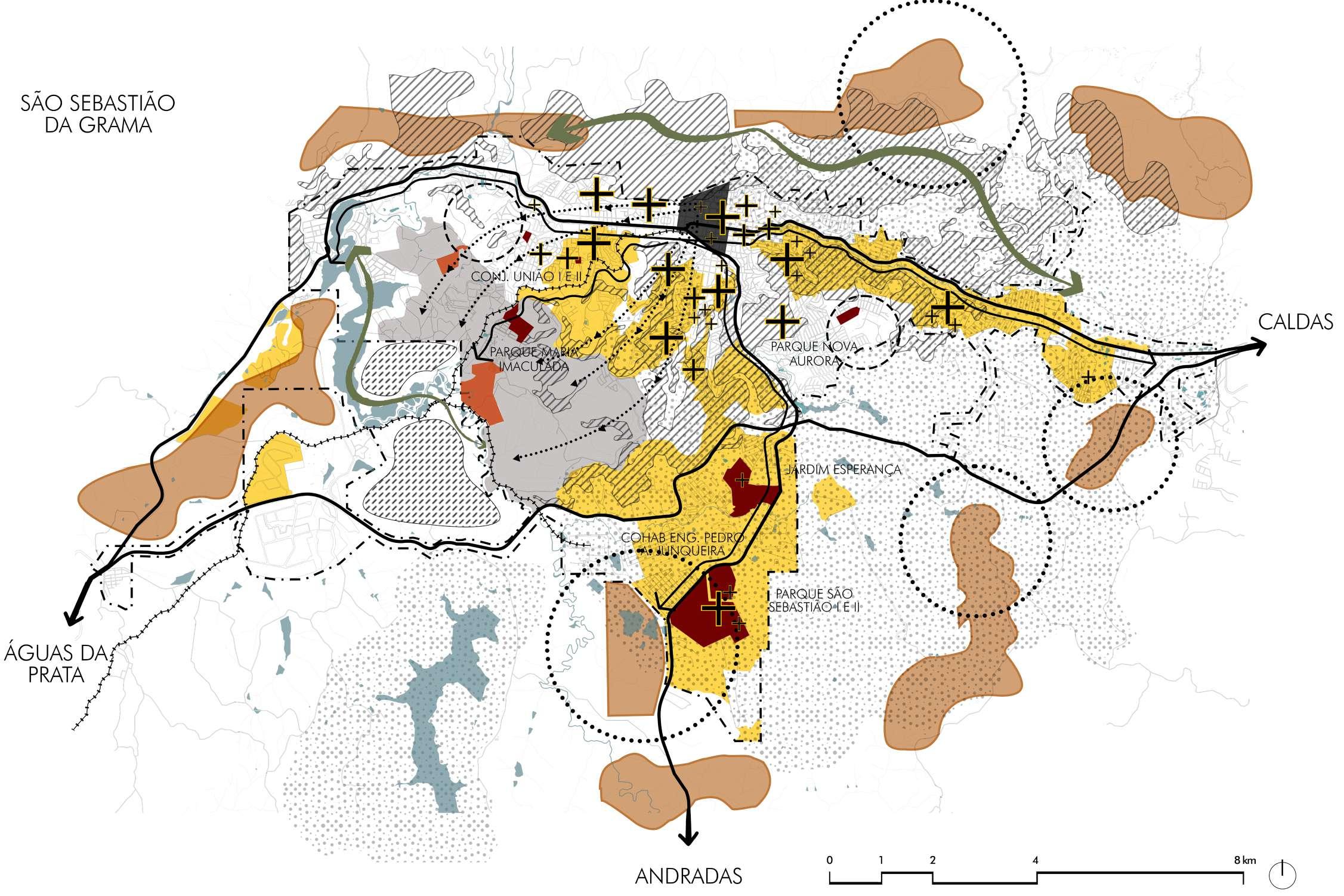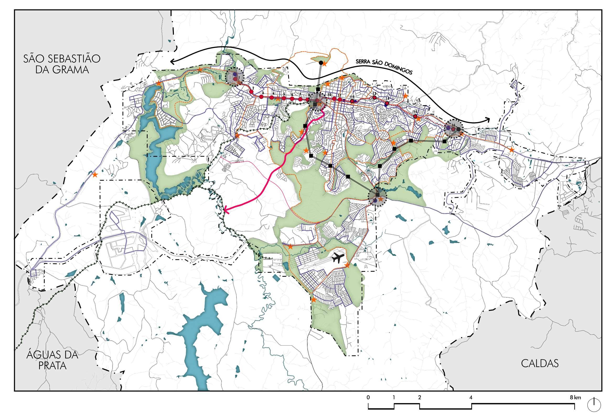 A partir das temáticas identificadas em Poços de Caldas, foi possível compreender a dinâmica e a formação do espaço urba no. Essas digitais do território orientaram e fomentaram as discussões que resultaram em um plano urbano cujo objetivo é explo rar as particularidades do município, além de solucionar problemáticas e enaltecer as potencialidades identificadas.