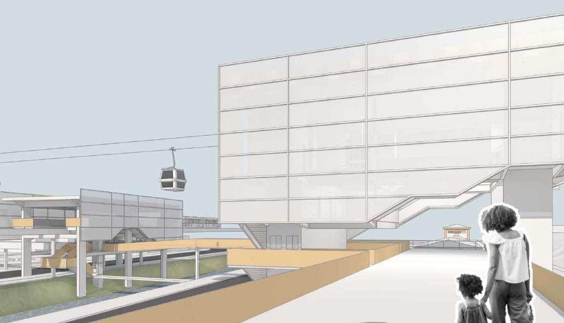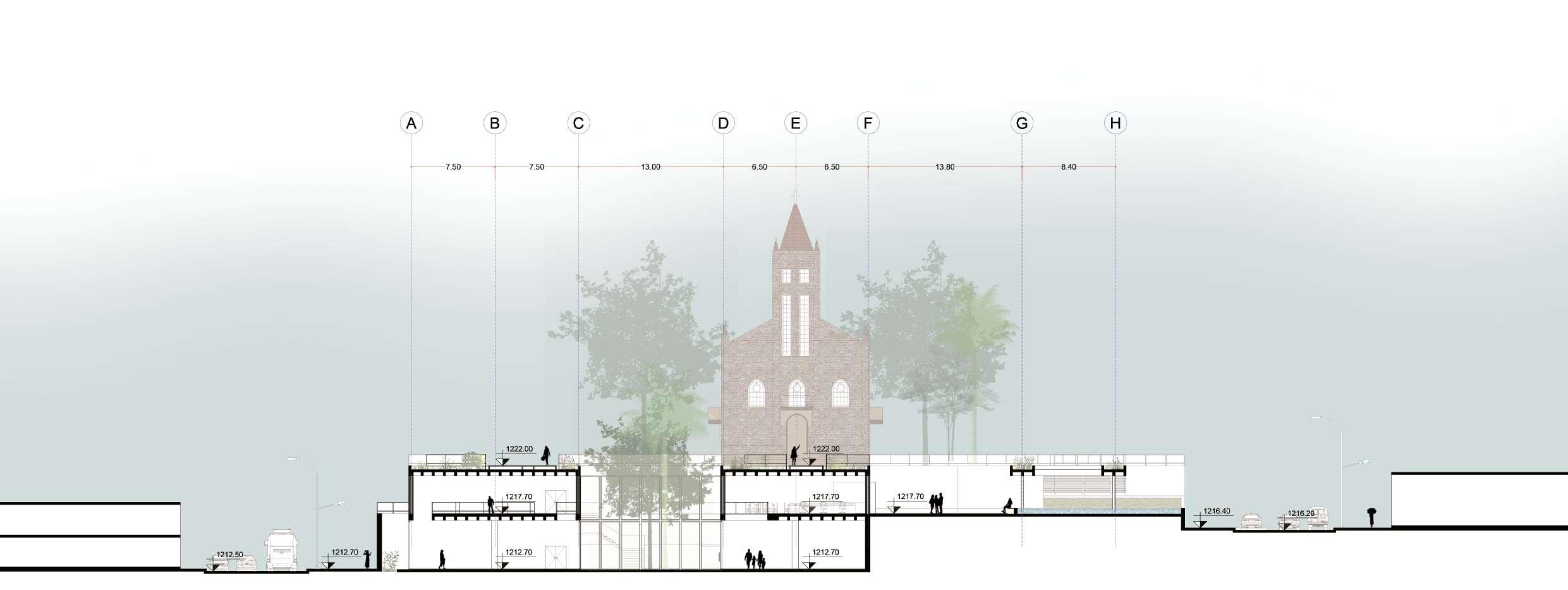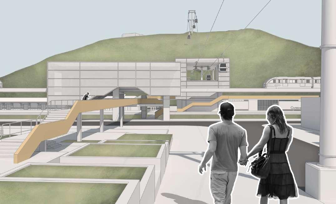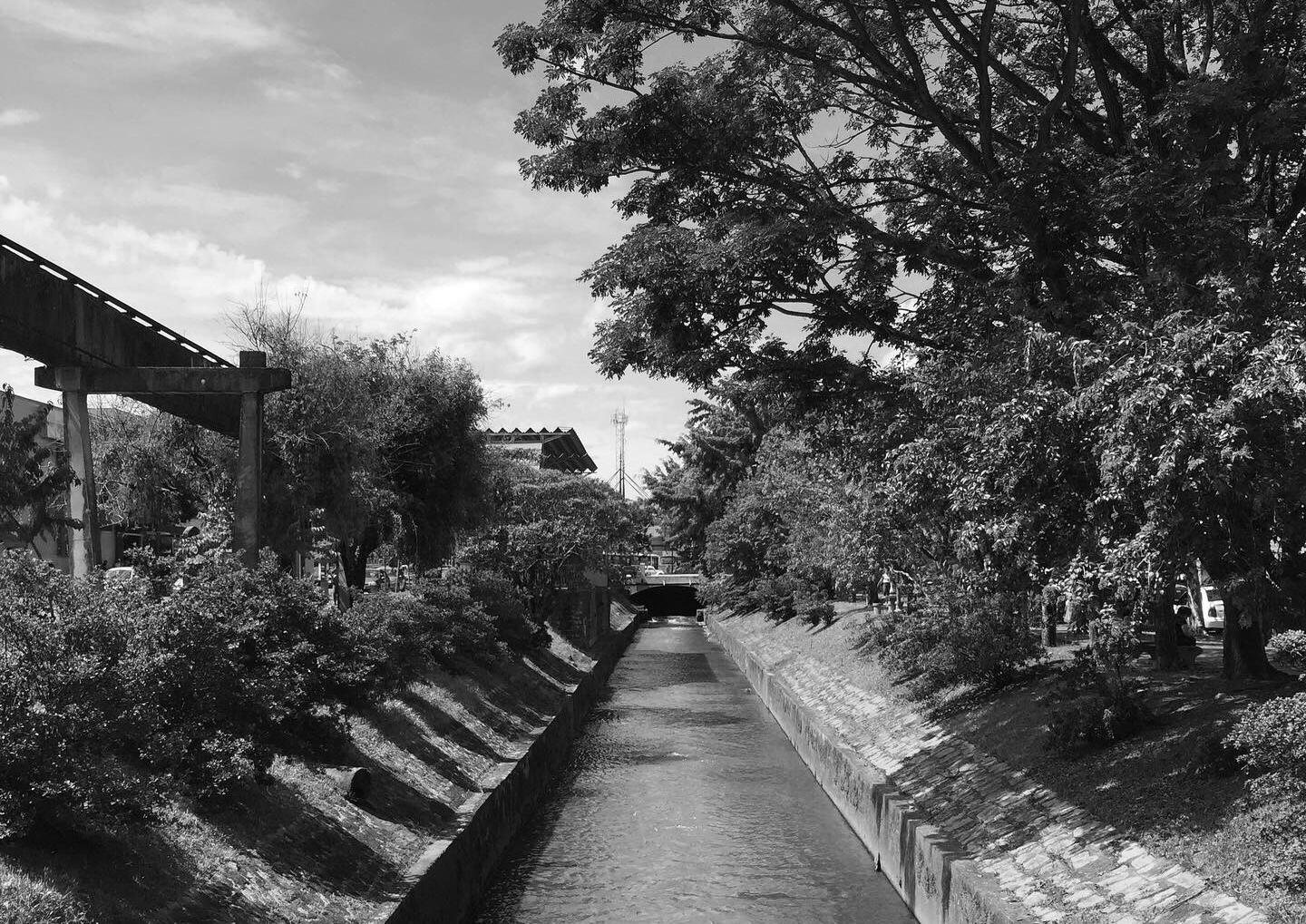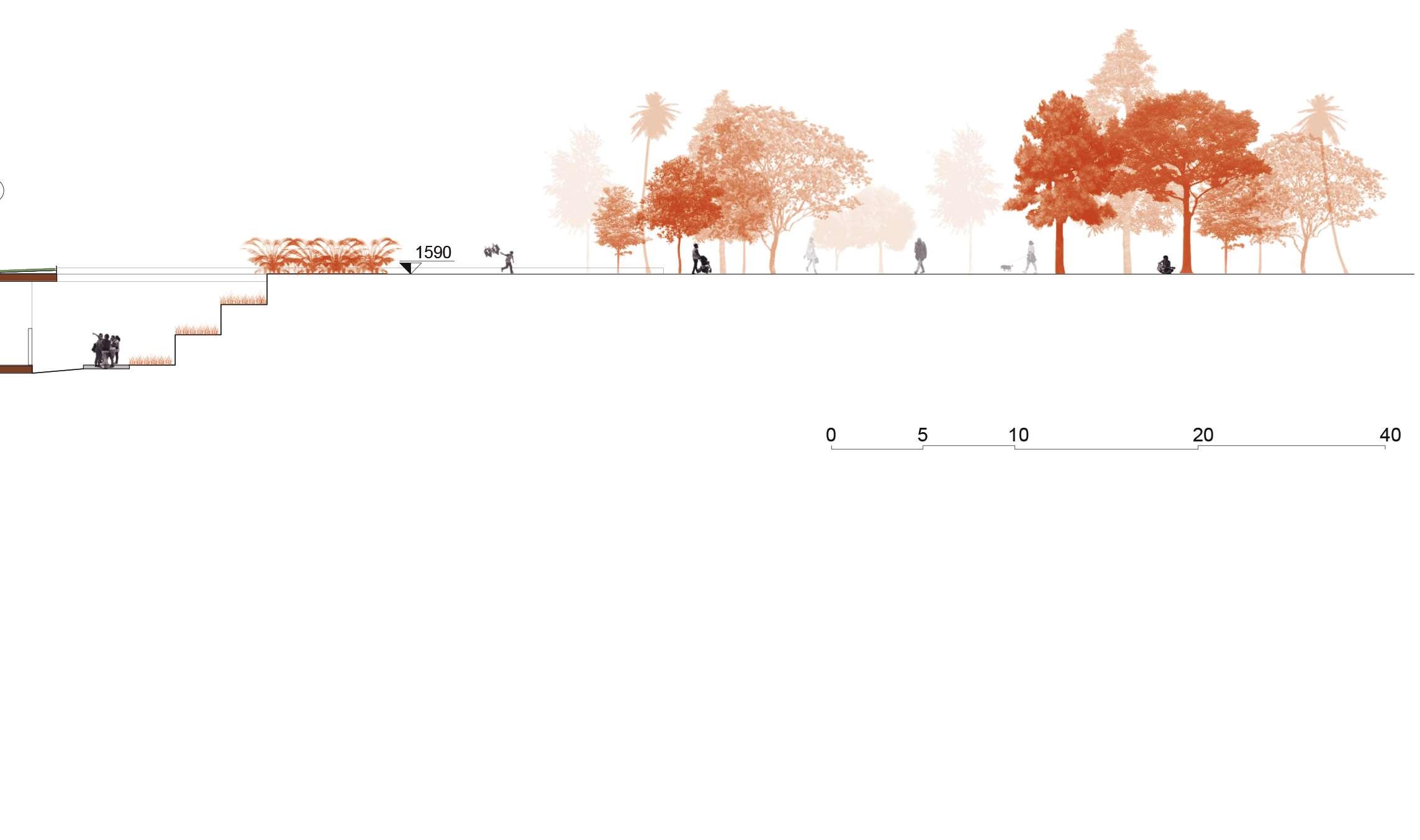 Também propõe-se um replanejamento no espaço urbano imediato a fim de beneficiar o transporte público, permear as quadras adja centes, criar pequenas praças a partir de lotes desocupados, estabelecer eixos cruzando a pro posta, visando sobretudo a valorização do curso d’ água, patrimônio destacado em todo o pro jeto urbano, que deverá ser requalificado como um espaço de permanência em destaque, e não apenas como fundo de um prédio abando nado.