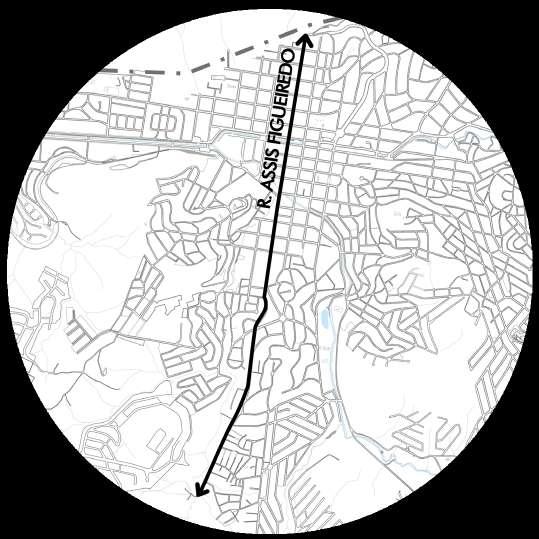 O local escolhido para a implantação da Casa da Leitura Jurandir Ferreira foi o bairro Jardim Cascatinha, ele se localiza em uma área de co nexão entre a região central e a região leste, en tre a Avenida Santo Antônio e a BR-146, o bairro tem um caráter misto com comércios e habita ções, também conta com a presença de duas escolas, a CEI Municipal Cascatinha e a Brasil Educacional, fator importante para o propósito da intervenção.