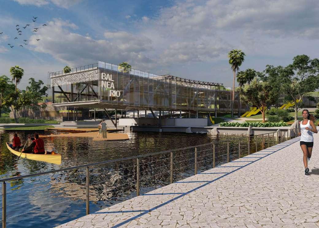 Busca-se também criar tal parque tam bém ligado a práticas esportivas, integrando cidade e natureza, com usos que não extrapo lam a exploração da água, mas que combinem aspectos da dinâmica urbana, especialmente com a social, cultural e econômica, por isso a implantação também no parque de um cen tro de treinamento de canoagem um centro poliesportivo.