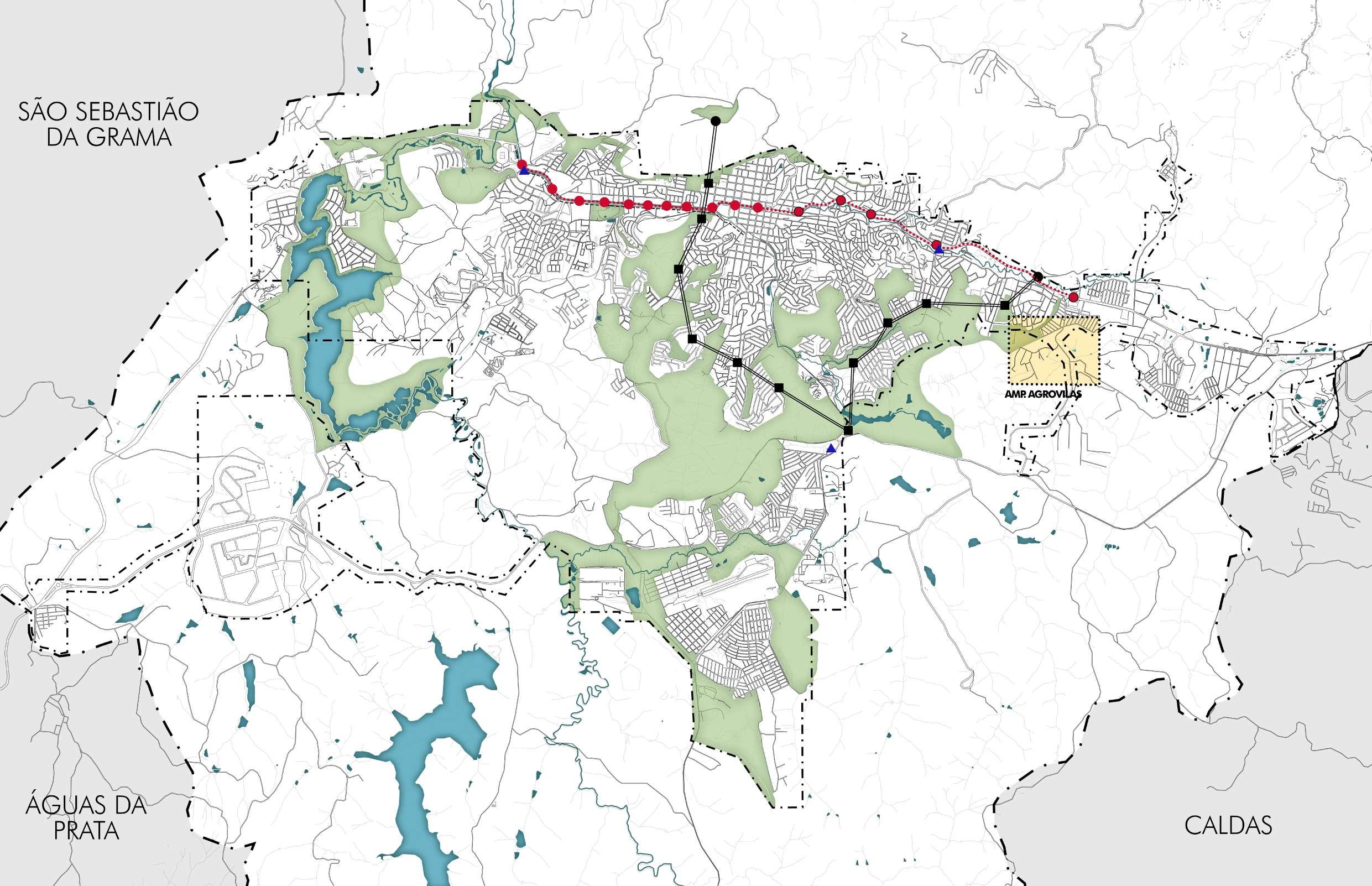 Porém, a atual região sul, localização do projeto, é hoje uma das áreas mais deficitárias dentro de Poços de Caldas no que se refere à infraestrutura urbana e oferta de equipamen tos de saúde, educação, cultura e lazer.