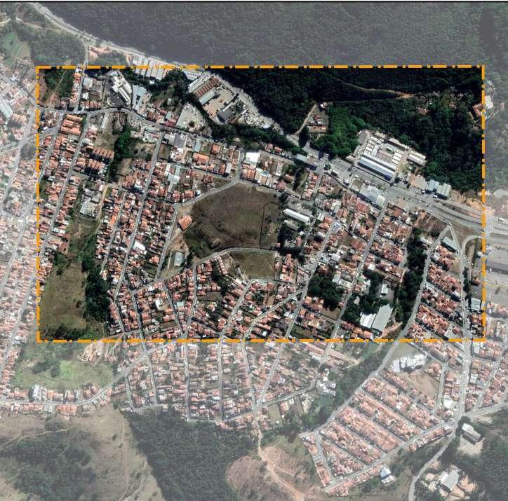 Legenda: Recorte de ampliação da área do Jd. Cascatinha. Fonte: Elaborado pela equipe sob base aérea do Google Earth, 2022.