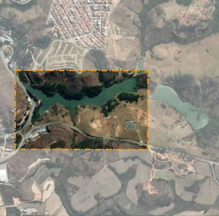 Legenda: Recorte de ampliação da área da represa. Fonte: Elaborado pela equipe sob base aérea do Google Earth, 2022.