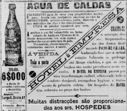 Legenda: Propaganda águas sulfurosas de Poços de Caldas. Fonte: Almanaque Henault (1910, p. 1347)