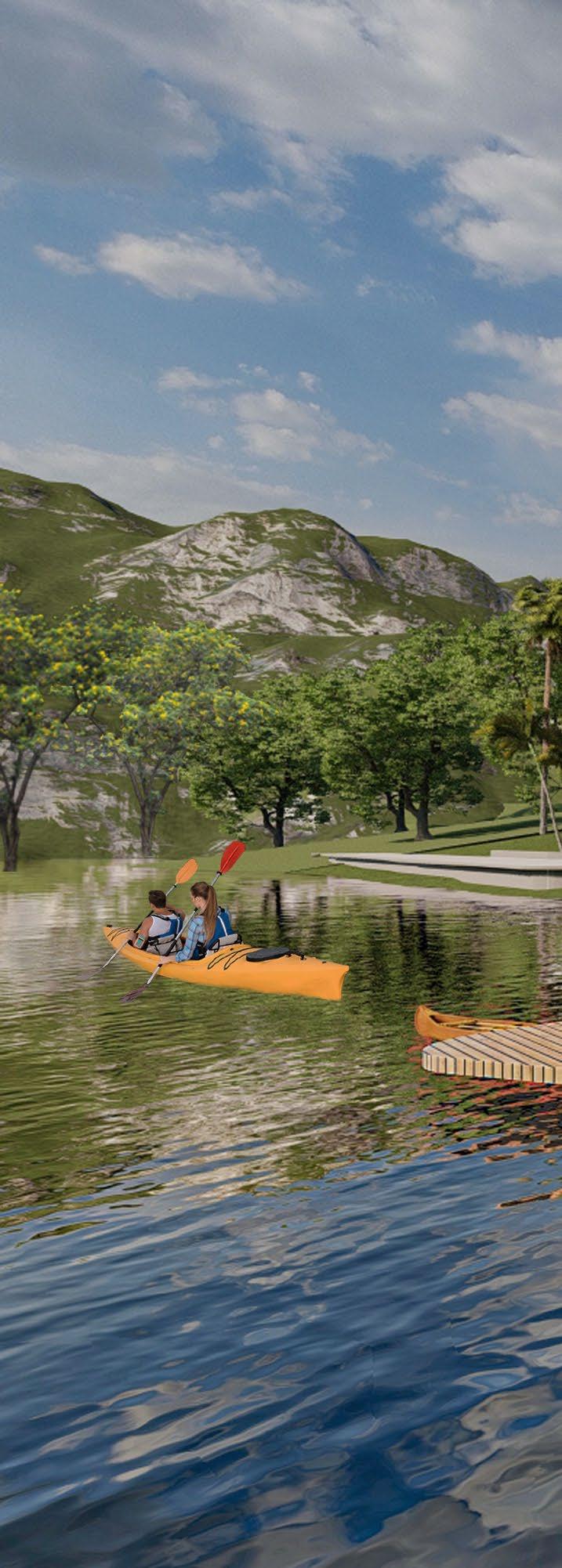 Busca-se também estar ligado a práticas esportivas, integrando cida de e natureza, com usos que não ex trapolam a exploração da água, mas que combinem aspectos da dinâmi ca urbana, especialmente com a so cial, cultural e econômica, por isso a implantação também no parque de um centro de treinamento de cano agem um centro poliesportivo