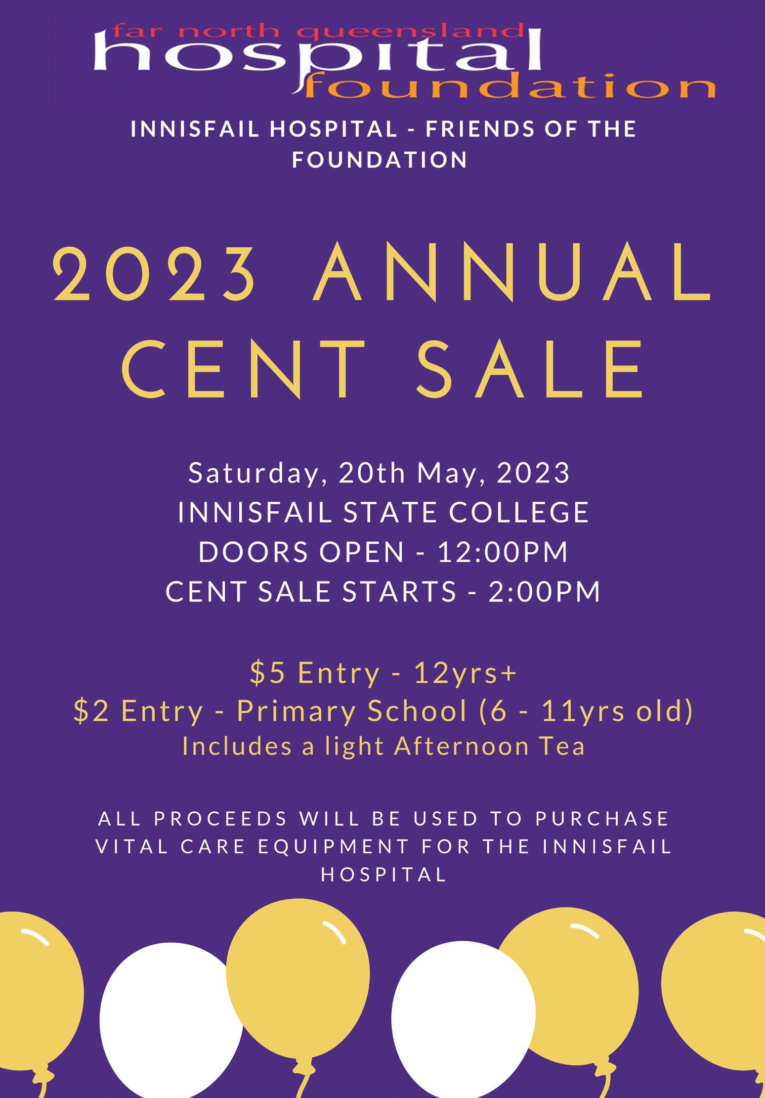 Friends of the Foundation are hosting their annual cent sale on Saturday, May 20 at Innisfail State College. Doors open at noon and the cent sale starts at 2pm. Entry $5 or $2 for children aged 6-11. It includes afternoon tea.