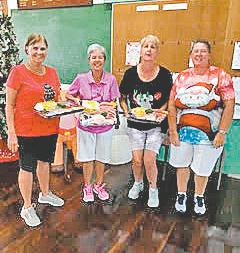 Third place winners were Terry McAlary, Debbie Maxwell and Ann Winsor with 1 win +1 draw + 31, winning a breakfast meat tray each.
