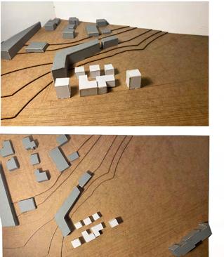 The following models were constructed to assist in demonstrating the way the ‘living pods’ sit within the grid.