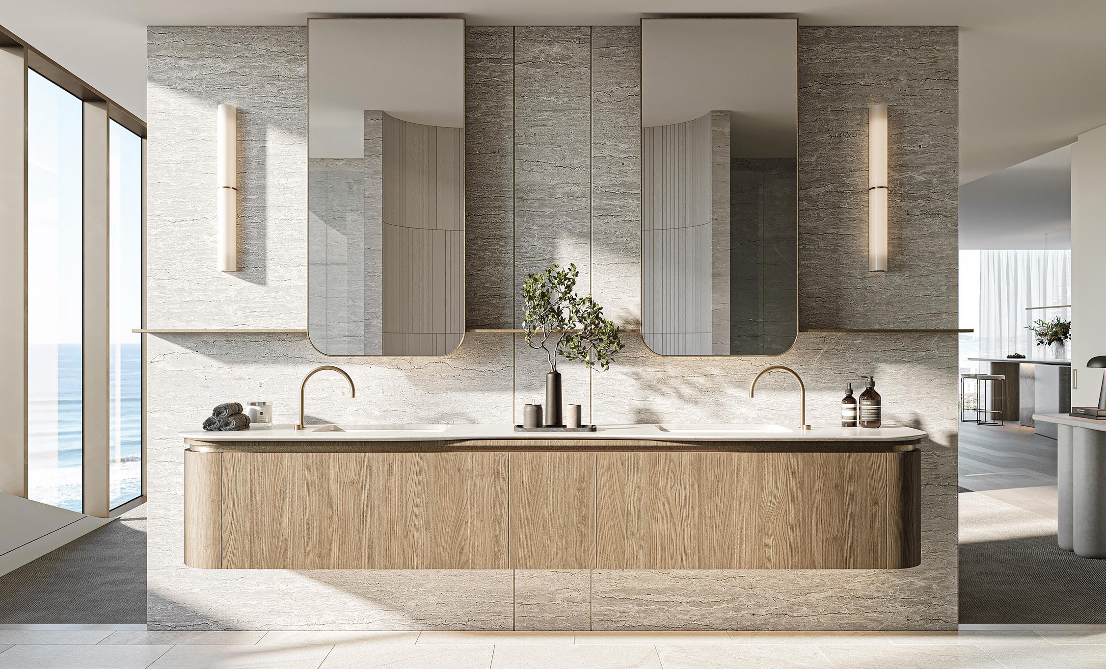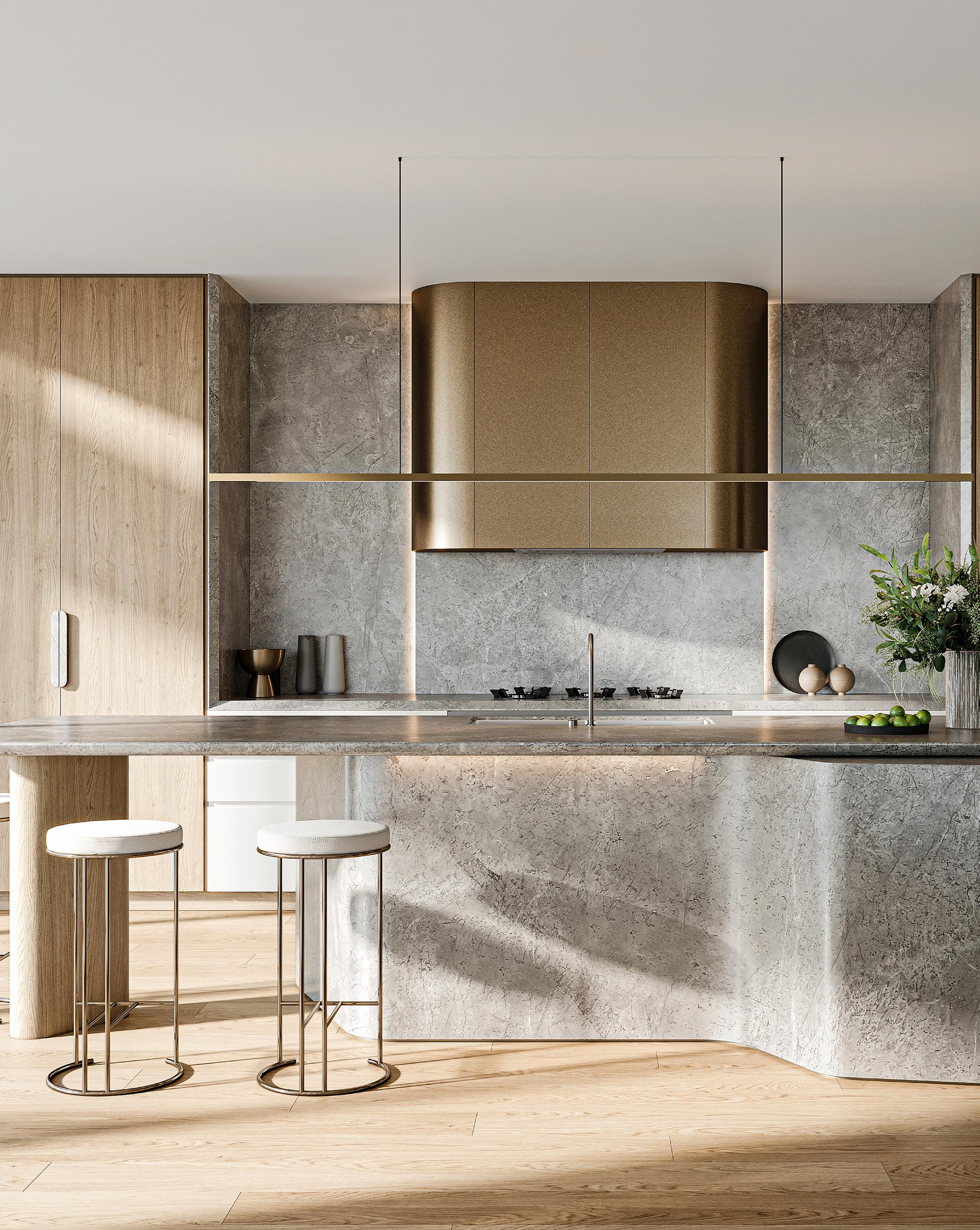 Aalto’s interiors echo the sculptural architectural language reference the ‘long-shore drift’. This tidal movement that shapes the coastline of Surfers Paradise has sculpted the interior language and joinery elements. Composed of finishes inspired by the coastal environment, the refined interior palette forges a sophisticated luxury residential offering that embraces the identity of the tower’s surroundings.