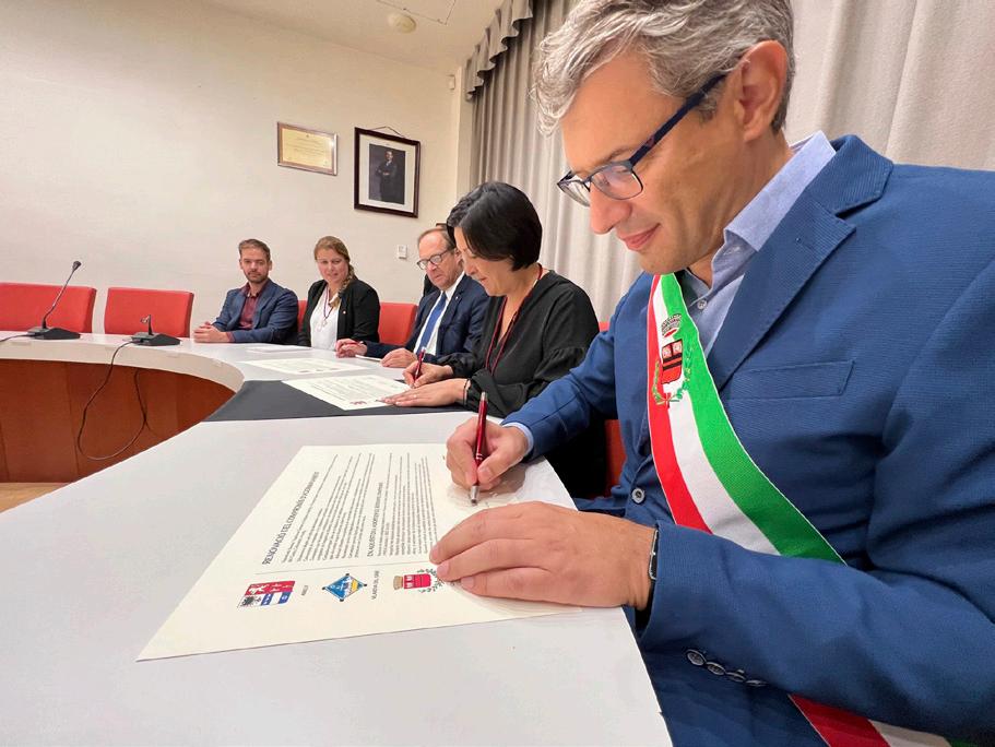 Gli amici francesi e catalani sono stati accolti il 28 Maggio in Sala Don Angelo Orsini dalle istituzioni, ovvero dal Sindaco, Cristiano Alderigi, dal Vicesindaco con delega al gemellaggio, Flavio Tani e dalla Vicepresidente del Comitato Gemellaggio, Patrizia Pellegrini. E’ stata l’occasione per celebrare importanti anniversari: 30 e 25 anni di gemellaggio rispet tivamente con Vilanova del Camì e Noves e 10 anni dal gemellaggio con Amilly, ricorrenza che non si è potuta festeggiare a causa del periodo pandemico. La mattinata è prosegui ta con l’inaugurazione del murales “Gemelli in Comune”, realizzato dal writers calcinaiolo Daniele Orlandi in arte Umberto Staila, con cui si celebra artisticamente l’amicizia tra Fran cia, Italia e Spagna.