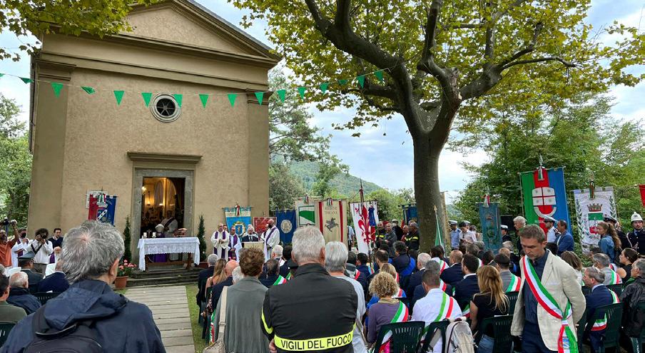 del 12 Agosto 1944, quando l’abitato, nono stante fosse stato dichiarato zona bianca dai tedeschi, fu luogo della spietata strage che vide, in poco più di tre ore, il massacro di 560 persone. Autorità e delegazioni si sono ritrovate e hanno depositato le co rone di fiori prima della celebrazione della S. Messa sul sagrato della chiesa da parte di S.E. Arcivescovo di Pisa Giovanni Paolo Benotto, per poi ascoltare gli interventi del le istituzioni presenti, tra cui anche il Presi dente della Regione Toscana, Eugenio Giani, un rappresentante dell’Associazione Martiri di Sant’Anna e il videomessaggio della Pre sidente del Parlamento Europeo, Roberta Metsola. Presente anche il Vice Sindaco di Calcinaia, Flavio Tani. Mentre l’Assessore Giulio Doveri ha partecipato alla comme morazione della strage di Aiale, borgo nel comune di Casciana Terme Lari. Un episo dio tragico, in cui persero la vita 17 persone. Tre luoghi a noi vicini, che sono simbolo di quella Toscana che ha pagato un prezzo al tissimo per ribadire il suo ruolo di terra di an tifascismo e di Resistenza.