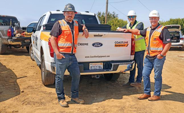 Right: Clark Guest, Jr. Area Sales Manager at Coastline Equipment in Santa Maria (left), Jack Shaefer, Precision Construction Specialist at John Deere (back), and Garrett Borrelli, Territory Manager, Coastline Equipment, Precision Solutions.