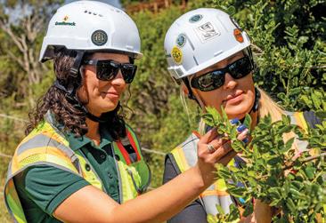Below: Jacquie Borges, Environmental Engineer, and Rachel Reed, Senior Land Use Specialist at Graniterock’s 21.6-acre A.R. Wilson Quarry revegetation area, featuring coast live oak woodland, grassland, and scrub species.