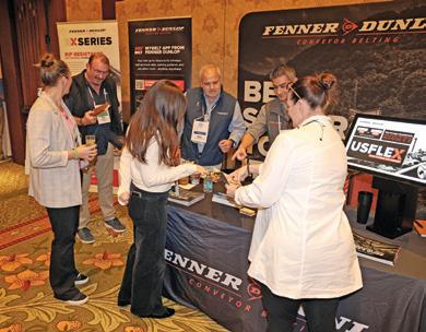 Attendees stop by the Fenner Dunlop booth during the Welcome Reception.