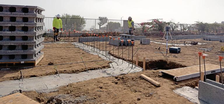 Above: Builders in Sunset Mesa began rebuilding after the Palisades Fires using ICCF, or insulated composite concrete form.