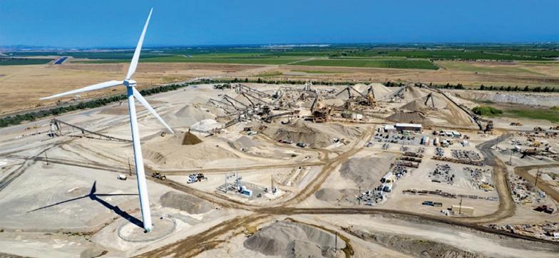 The 1.5 MW wind turbine at Teichert Materials’ Vernalis plant has produced more than 23 gigawatt hours (GWh) of clean electricity since 2010, the equivalent of more than 1,800,000 gallons of gasoline in clean, renewable energy, thereby avoiding more than 16,000 metric tons of CO2e. Teichert was the first company in northern and central California to install a large wind turbine on-site for use at a manufacturing facility. n