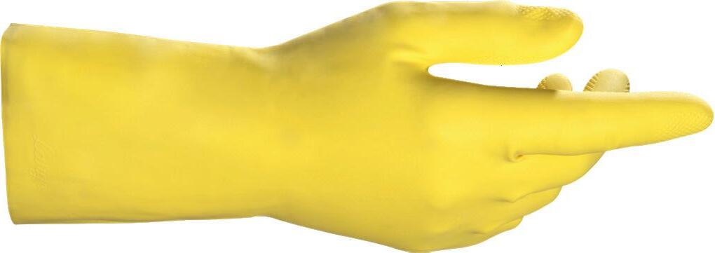 Vital 124 Yellow Rubber Flocked Glove, perfect for a wide variety of low risk cleaning tasks. Non slip embossing for grip and cotton flock lining for comfort.