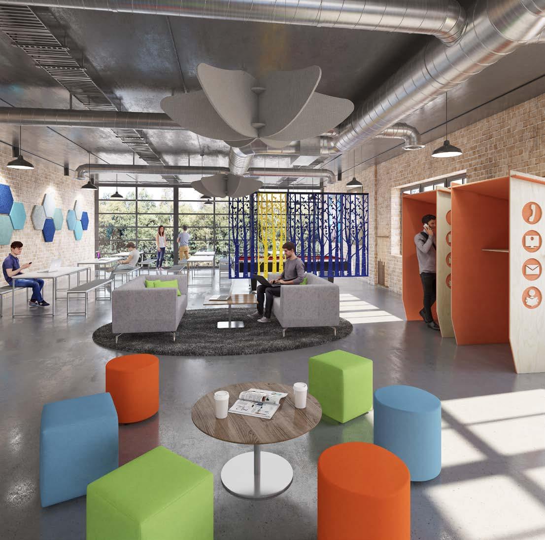 Natural light, natural colours and natural products all work together to create the optimum environment for productivity and creativity. Contact with nature and our response to it continues to exercise significant effects on people’s physical and mental health, performance and well-being. Natural products are also more tactile, more versatile, and when it comes to good acoustics, measurably more effective.