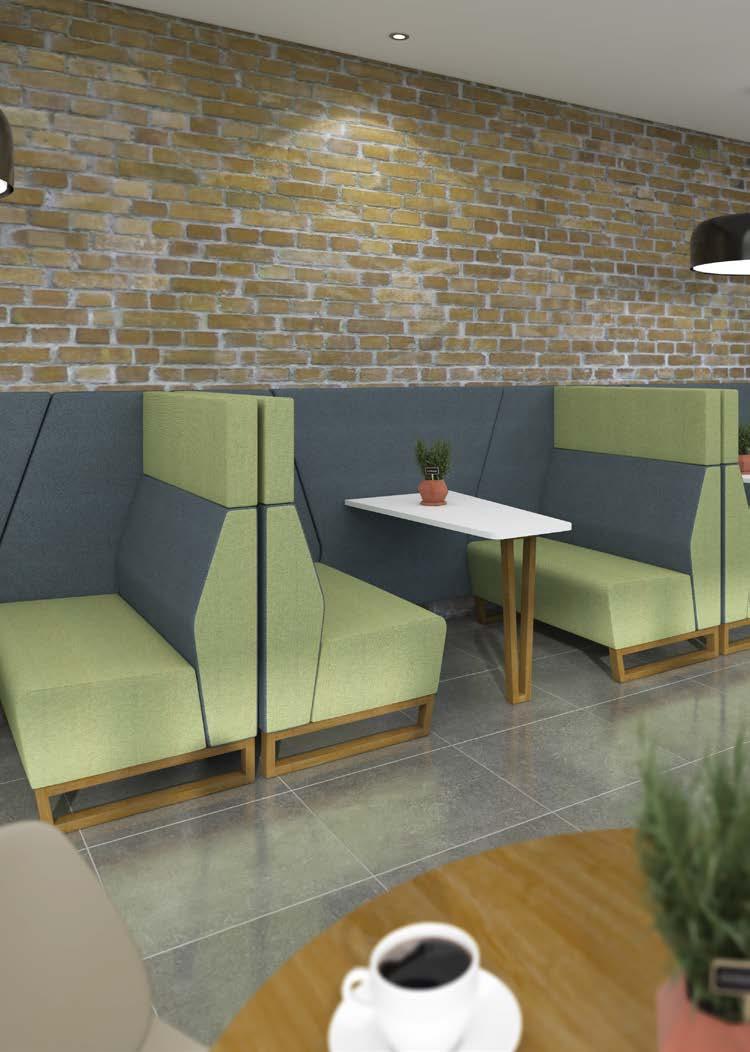 Upholstered soft seating helps to create relaxed working environments where people can go for some time away from their desk, meet and collaborate or bring their laptop with them to work away from the distractions of phones and colleagues. An extensive range of fabrics and finishes can add style, colour and interest by creating a relaxed and unique, fully co-ordinated look, perfect for social spaces, working hot spots or for use in a reception area.