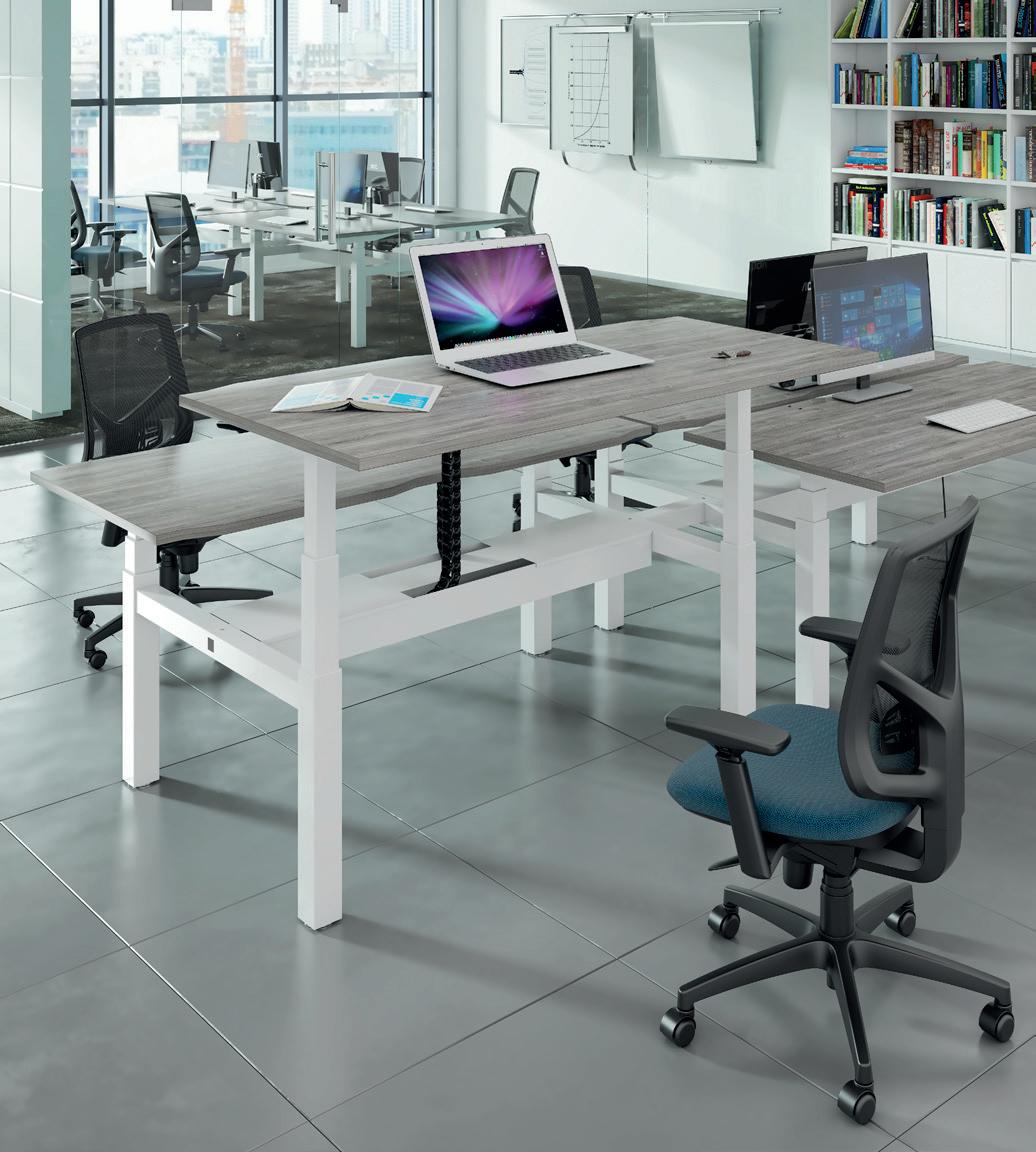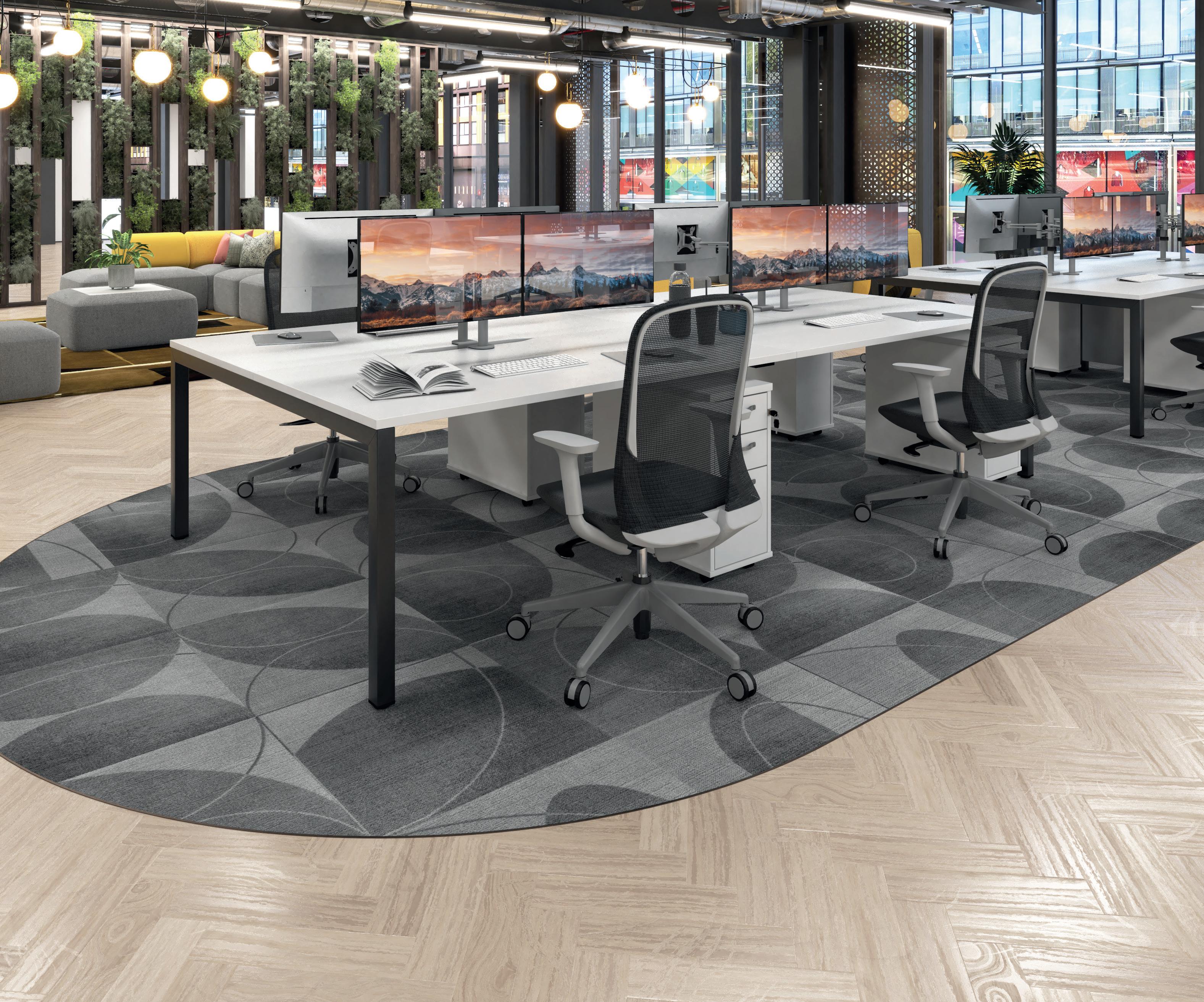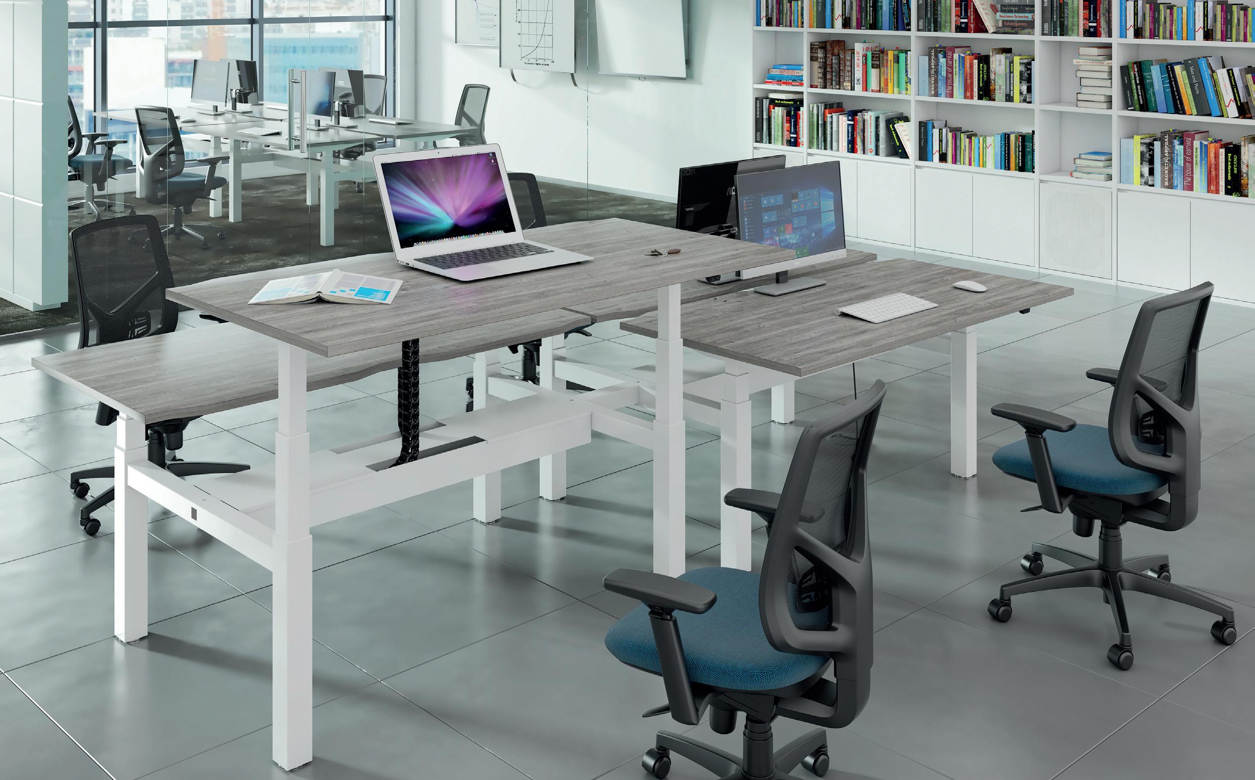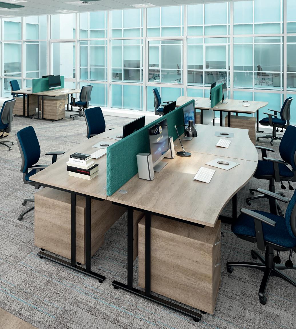 • Four straight 800mm deep desks in a double back-to-back bench desk configuration