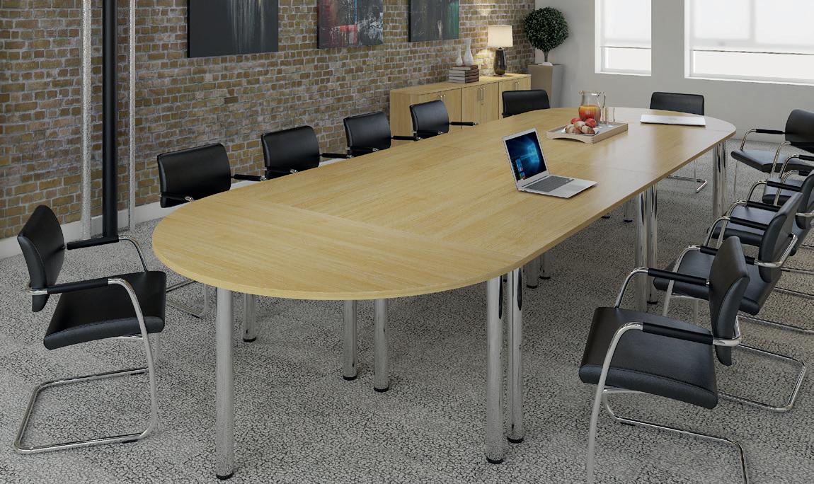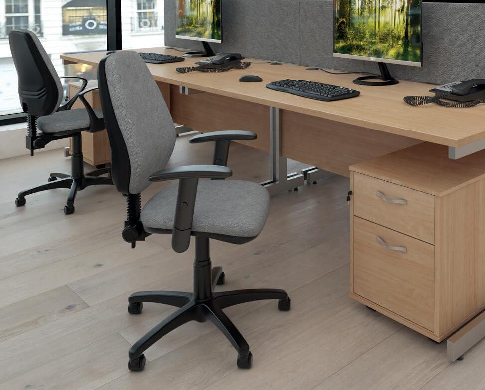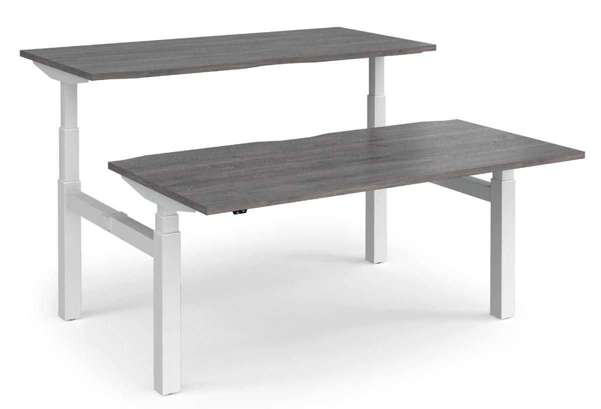 • Two straight 800mm deep desks back-to-back, both with scalloped tops