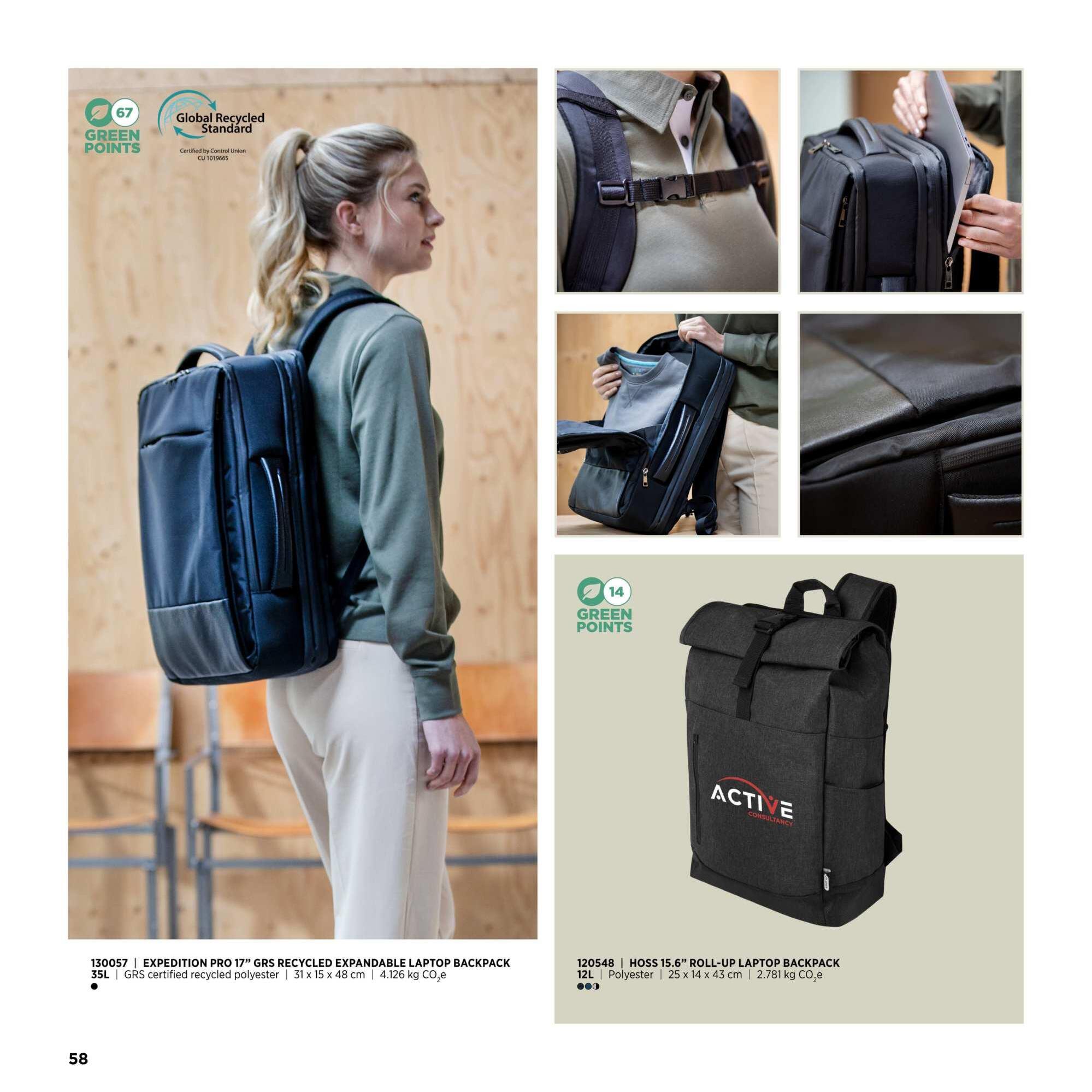 Selected with care: our new bags collection. With endless possibilities from backpacks to totes, more sustainable options like our new Recycled Classic Oregon drawstring backpack made from GRS-certified recycled cotton. The Ross travel accessories collection. Innovative designs like the modular Roam backpack or the introduction of a bags collection for Moleskine, each range with a distinctive personality. Elevate your brand visibility with our bags collection. Perfect for everyday use, they ensure your logo stands out wherever you go.