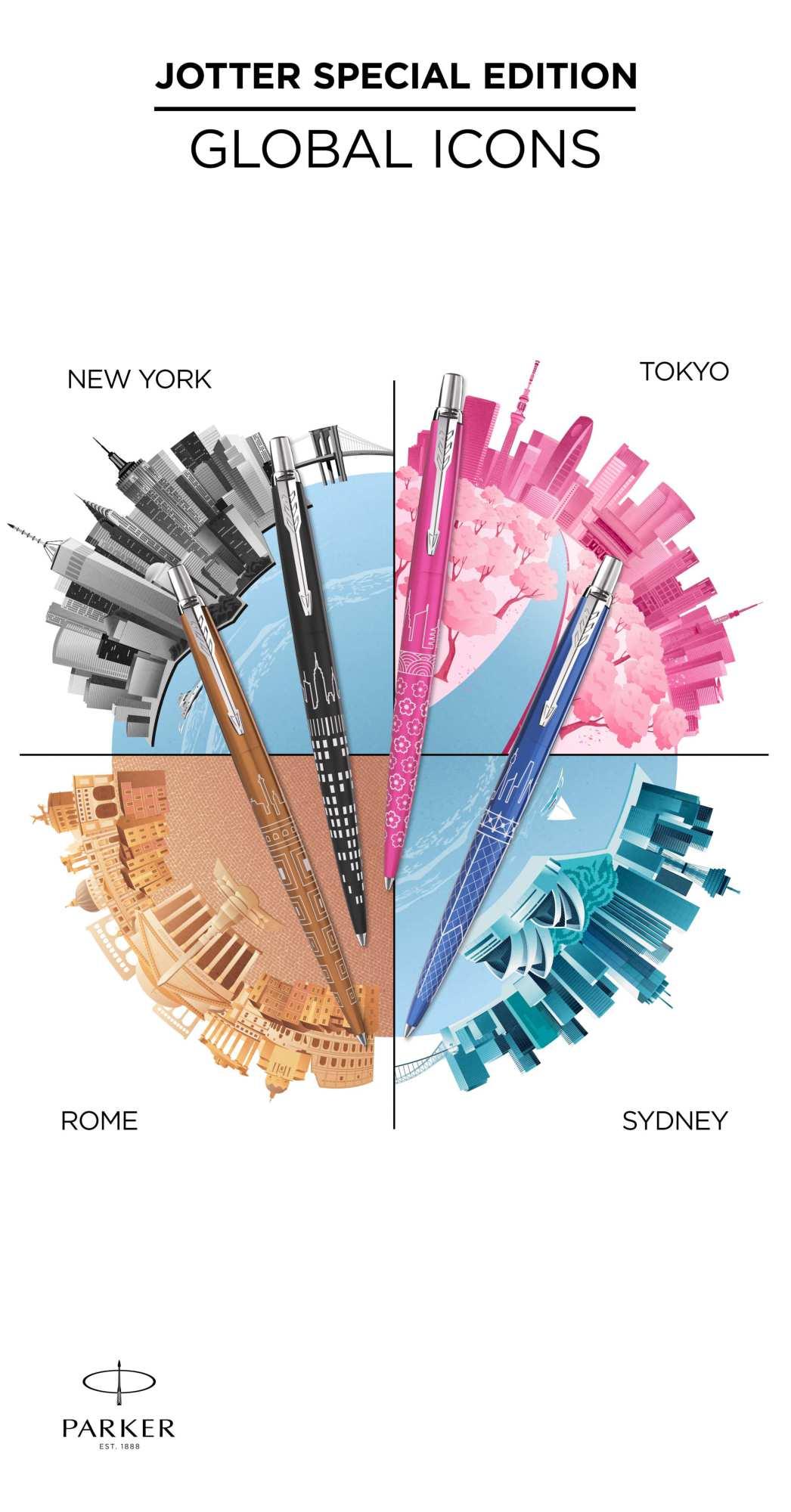 Taking their inspiration from all four corners of the globe, each special edition pen is dedicated to a single city with each finish telling the story of its architecture, culture, and people. Distilling their story into a single pen design, the new Jotter collection will turn every day into an epic adventure.