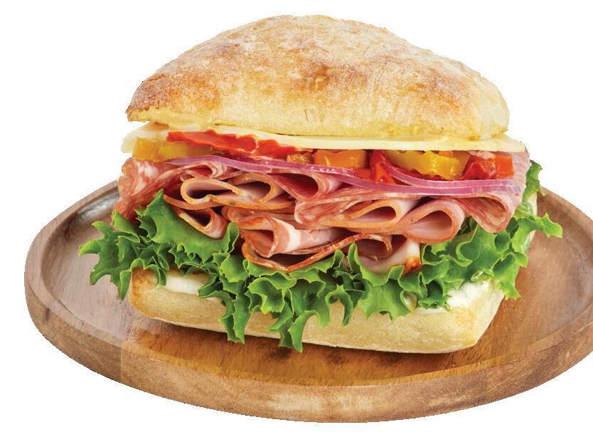 Italian Godmother: Italian meats, provolone cheese, lettuce, mayo, Dijon mustard, Italian dressing, red onion and banana peppers are piled high on a Cal & Gary's Ciabatta bun and best served warm.