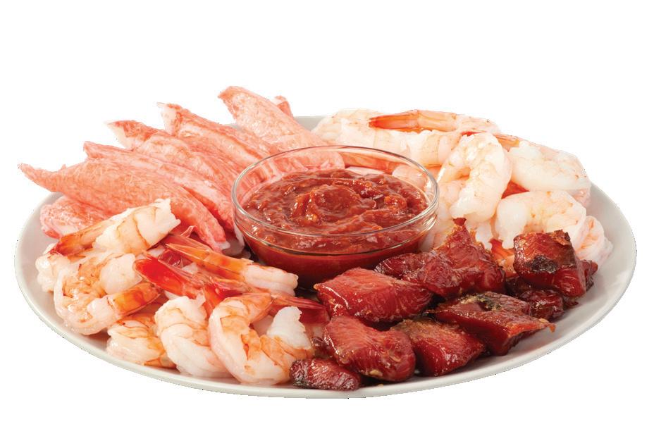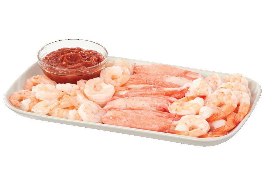Dive in to Sockeye Salmon Nuggets, Cooked Shrimp and Imitation Snow Crab Legs served with a cocktail sauce. Complemented by a savoury cocktail sauce, you’ll be hooked on the delightful flavours!