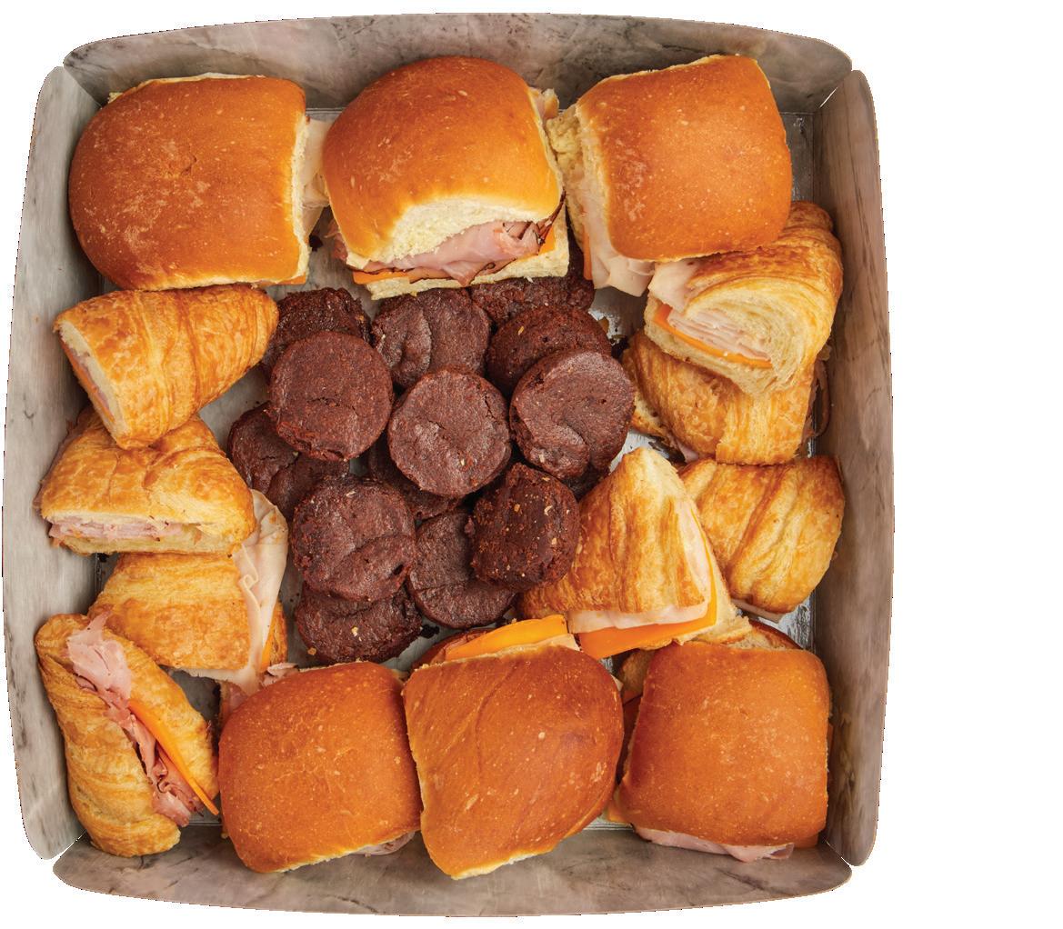 Start your mouthwatering adventure with fresh, soft instore baked buns and mini croissants, filled with black forest ham, deli chicken, and cheddar cheese. Don't forget the sweet ending – Two Bite Brownies – a kid-approved treat.