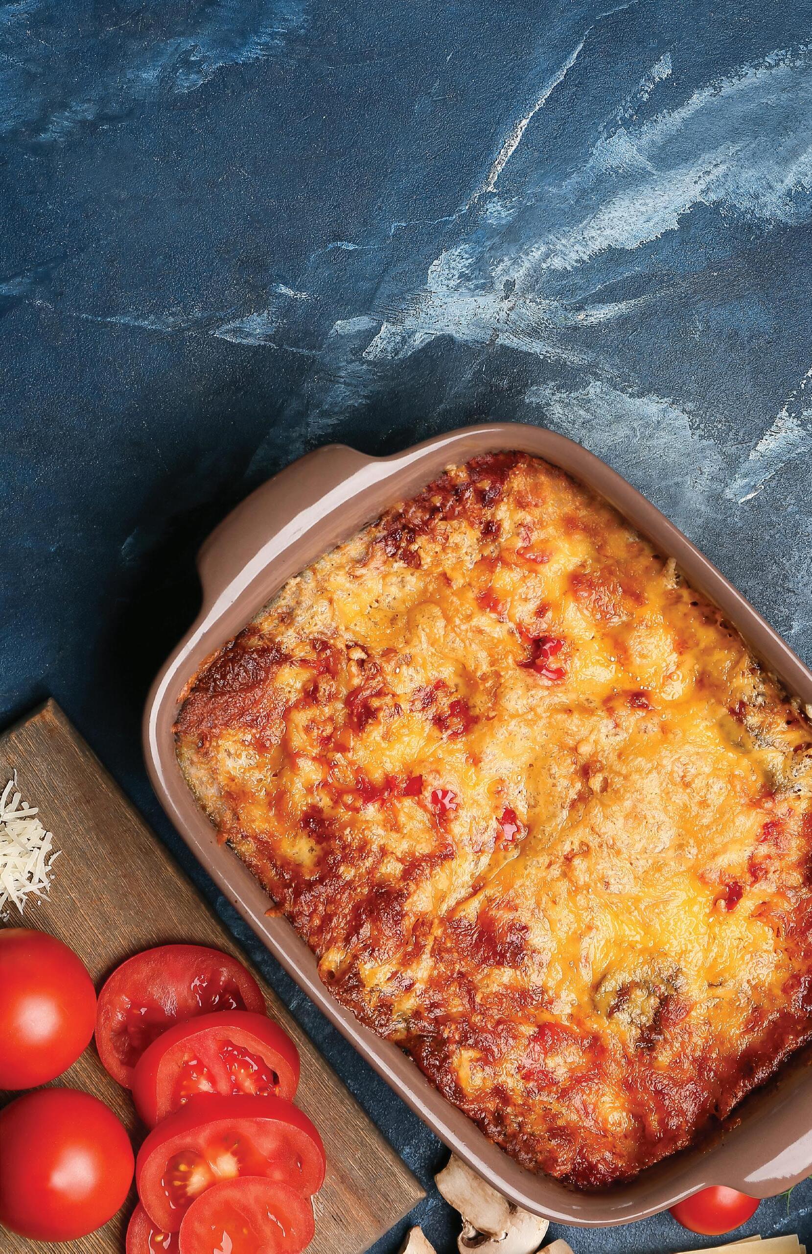 Indulge in a masterpiece of al dente noodles generously layered with ricotta, mozzarella, asiago, and parmesan-style cheeses, all nestled within a fragrant tomato sauce. Crowned with mild parmesan and expertly browned to perfection, it's a savoury symphony ready to dazzle your taste buds. Simply heat and serve for a truly satisfying meal!