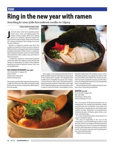 Ring in the new year with ramen Searching for some of the best authentic noodles in Calgary Story & photos by DANNY LUONG dluong@cjournal.ca