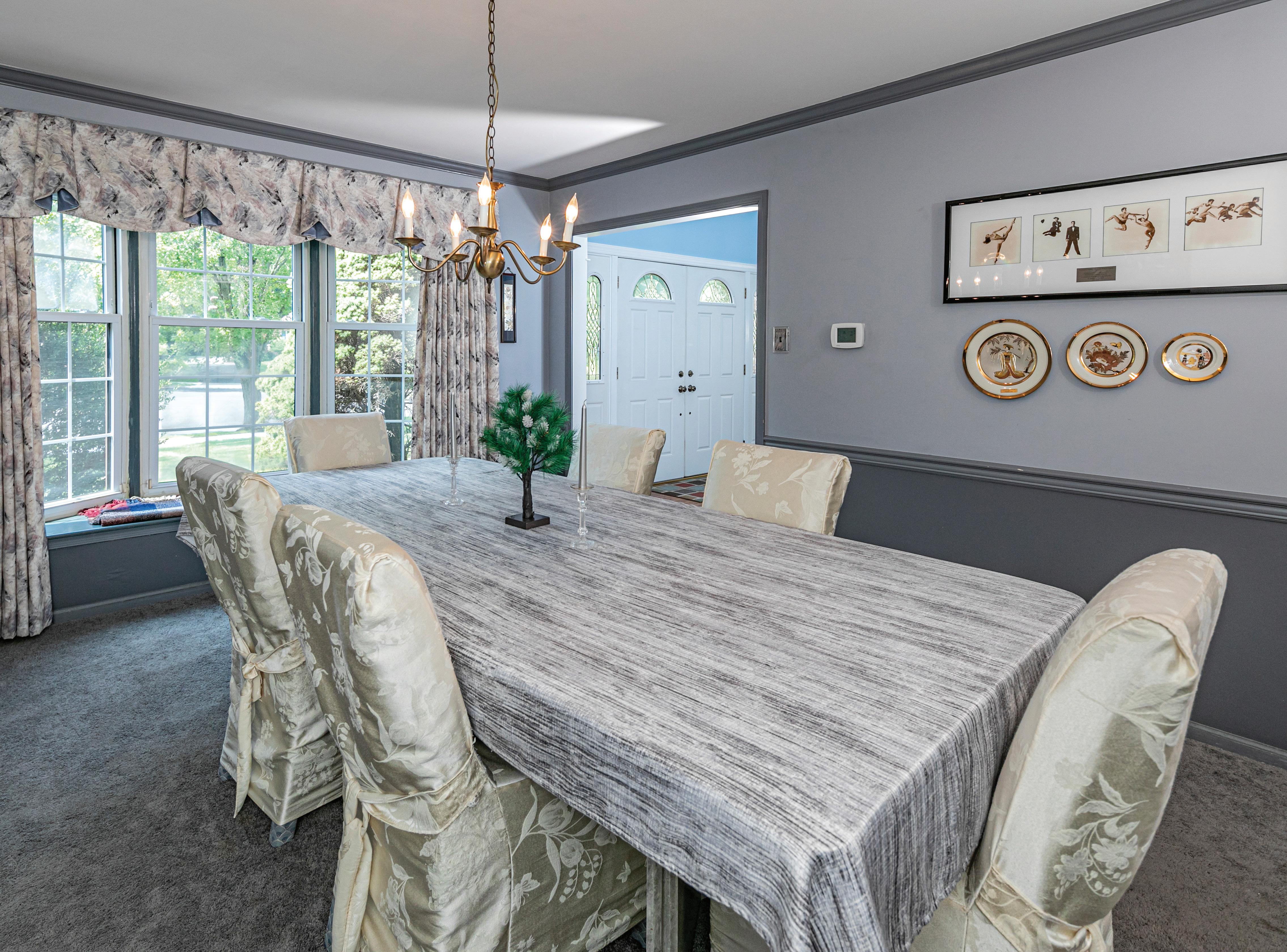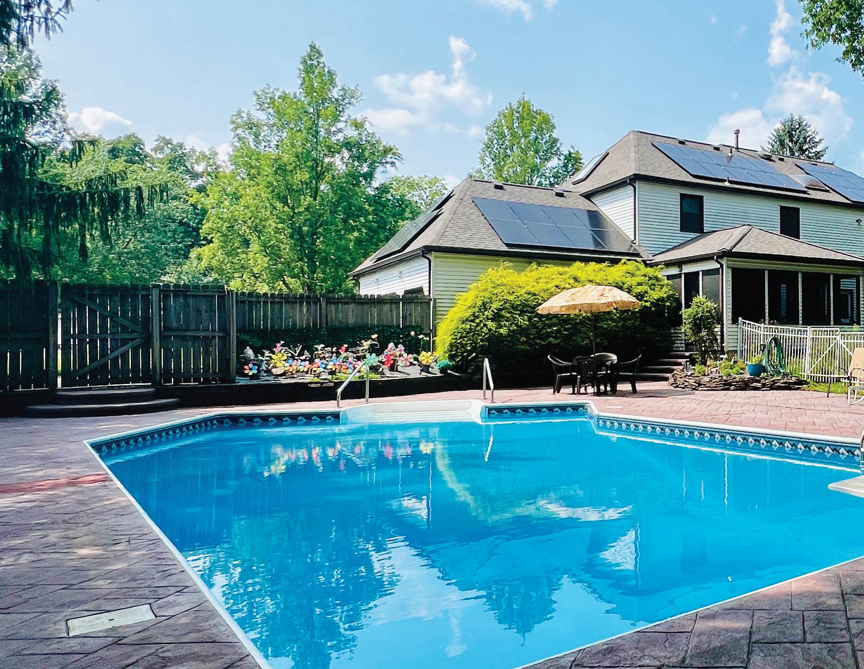 interior access to the enclosed porch and attached three-car garage. Upstairs are four bedrooms and two baths, including the spacious main suite with a palatial primary bath featuring a skylit jacuzzi tub and separate shower. One sink in the bathroom and the other just outside in the dressing area adjacent to the walk-in closet makes it easy for more than one getting ready at once. Three other bedrooms share a hall bath. The partially finished basement offers additional space for hobbies and recreation. Public water and sewer make utilities lower maintenance, while solar panels help reduce electricity costs. This is the perfect “staycation” home, conveniently located for everyday living—near nationally acclaimed West Windsor-Plainsboro Schools, the Princeton Junction train station, Mercer County Park, Route 1 and I-295.