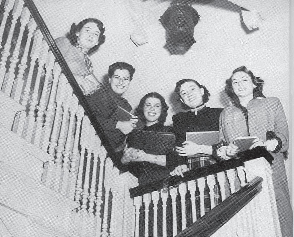 student watched her father, brother and fi ancé march to the battlefront, she suddenly became aware of her new responsibility in the world,” wrote one student in a paper from the era. During World War II, the community rallied around volunteer efforts, raising money and rolling bandages for the Red Cross.