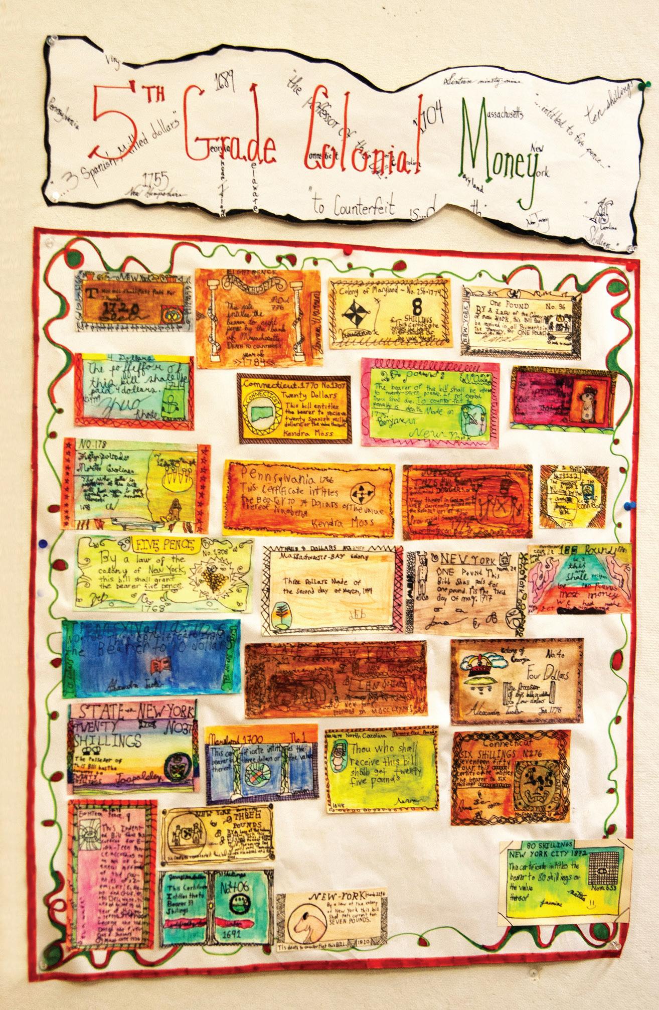 In Giovanni’s class, fifth graders designed and created their own colonial money after learning about the various currencies in the thirteen colonies.
