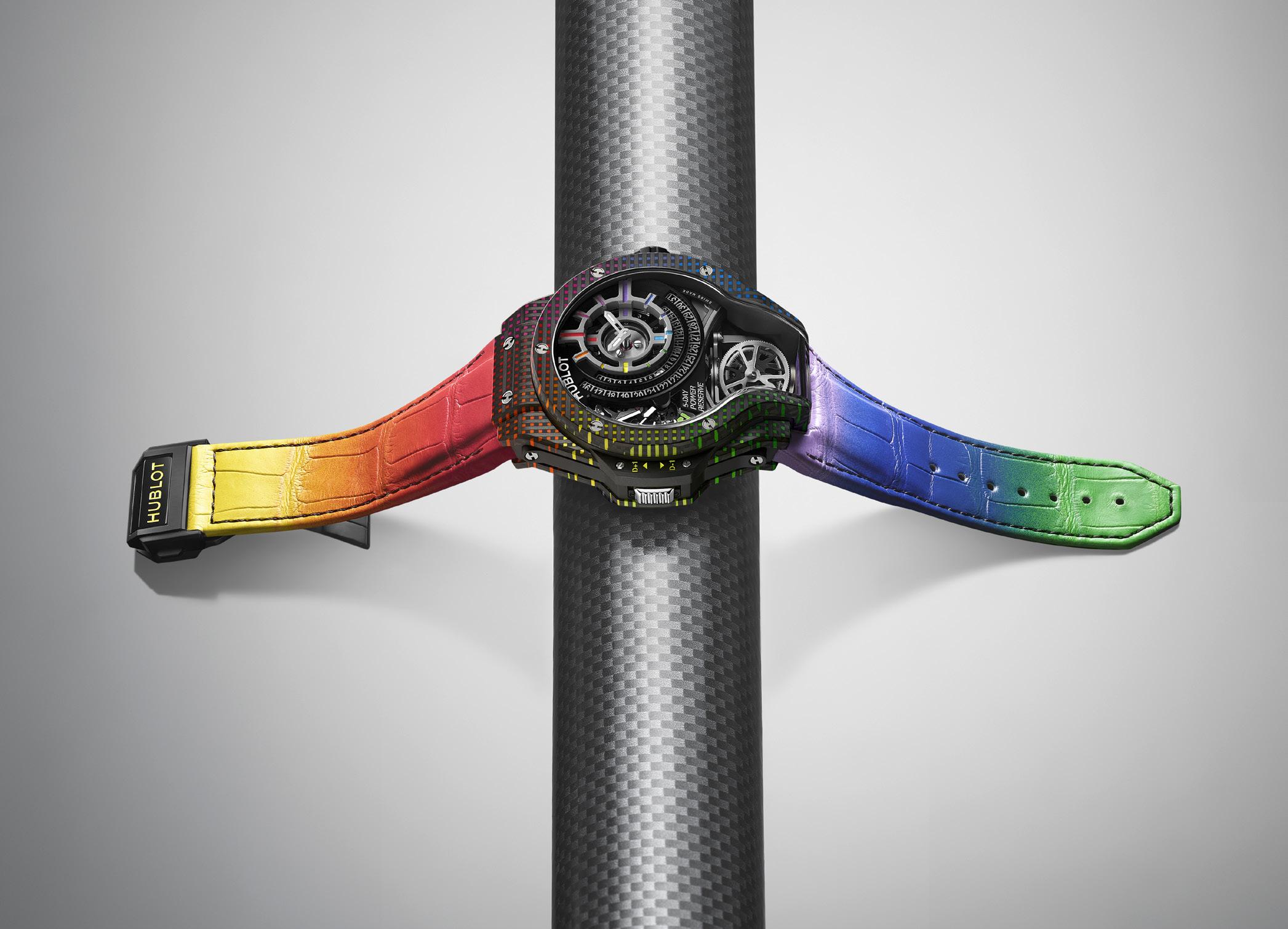 Even more technically astounding is that the basic power (mainspring) and regulation of the self-winding UR-13.01 movement is on a traditionally horizontal plane while the display is perpendicular to it, with power being distributed by something akin to a driveshaft.
