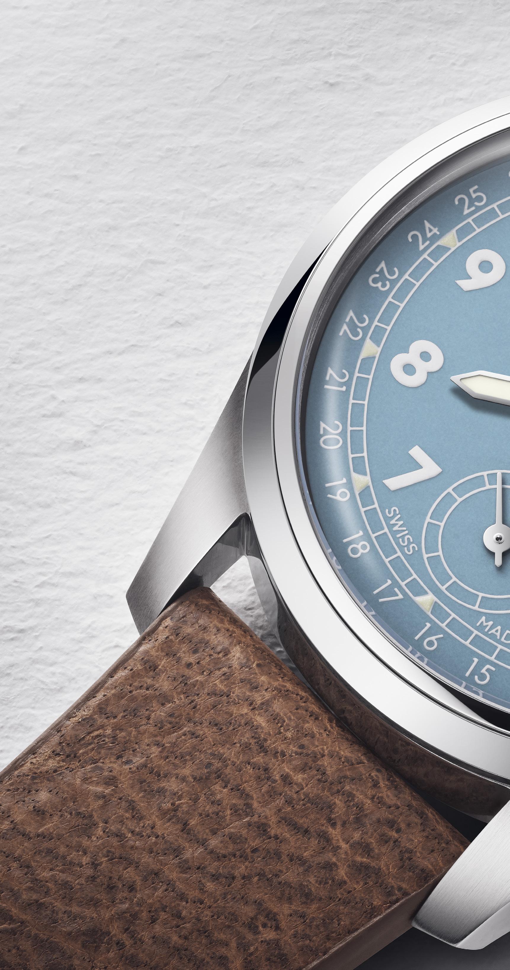 Under the dial is the manually wound Caliber 9S64, which allows for the slim profile and accuracy to +5 to -3 seconds per day. It beats at a frequency of 28,800 vibrations per hour and has