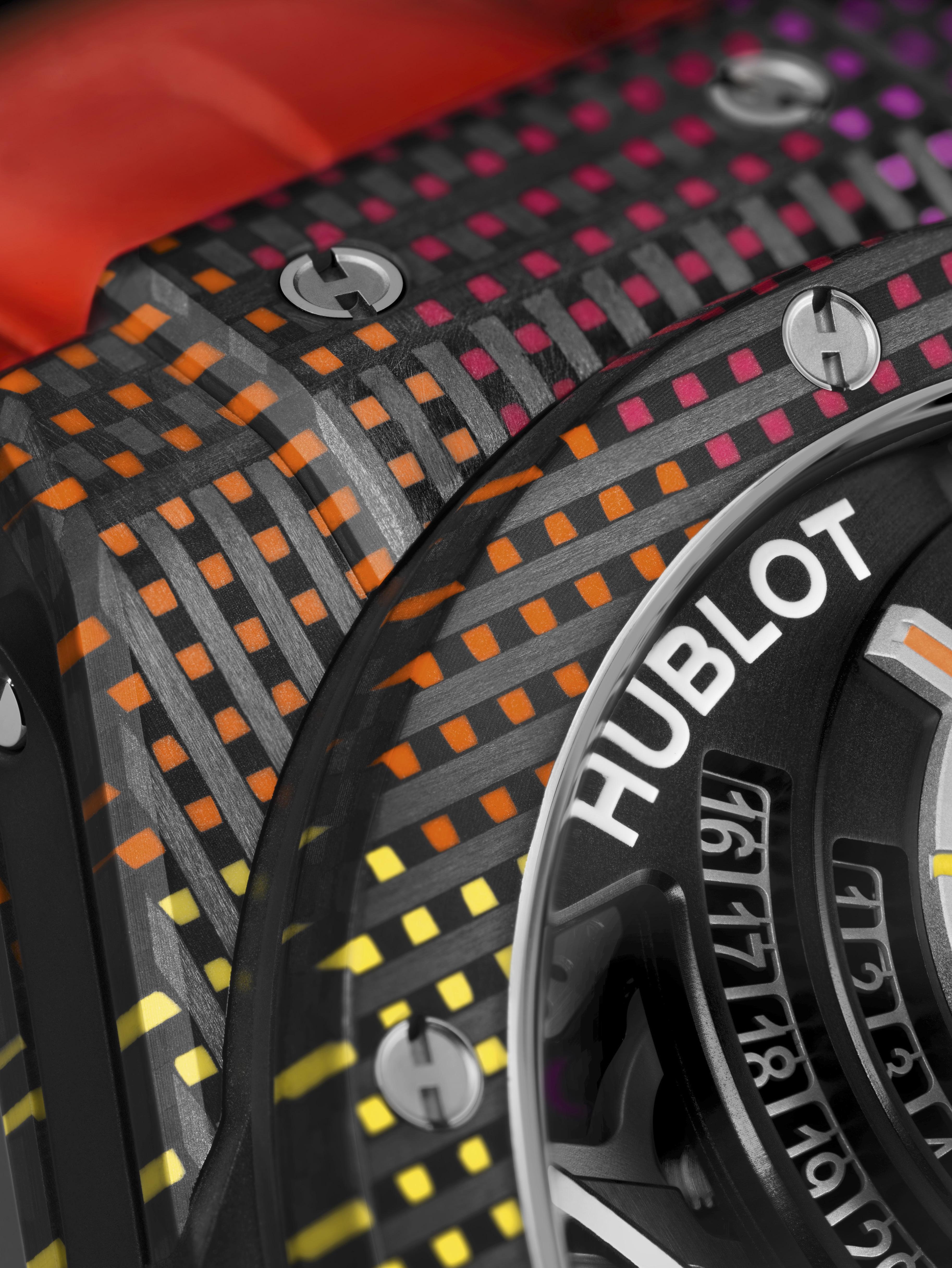 It is on the dial where we see the Flyback Chronometer’s innovative and carefree spirit. The red and blue highlights might be seen as a link to partner Red Bull, though the liberal use of