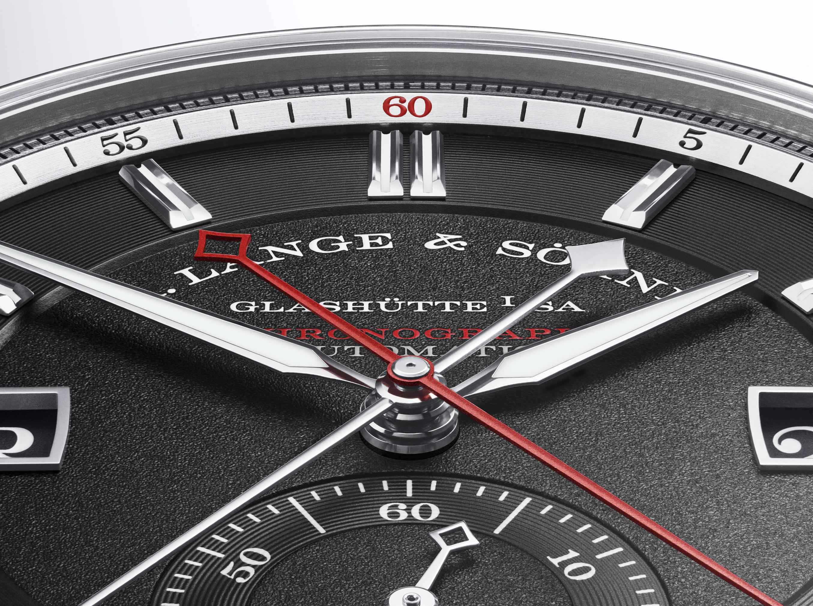Adding to the high-energy details are a central chronograph seconds hand and subdial hands all in red and inspired by sports car dashboards, as well as the alternate indexes on the small seconds at 6 o’clock and the 10-minute/10-second markers on the flange, all of which are in a fiery orange.