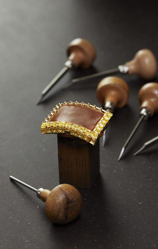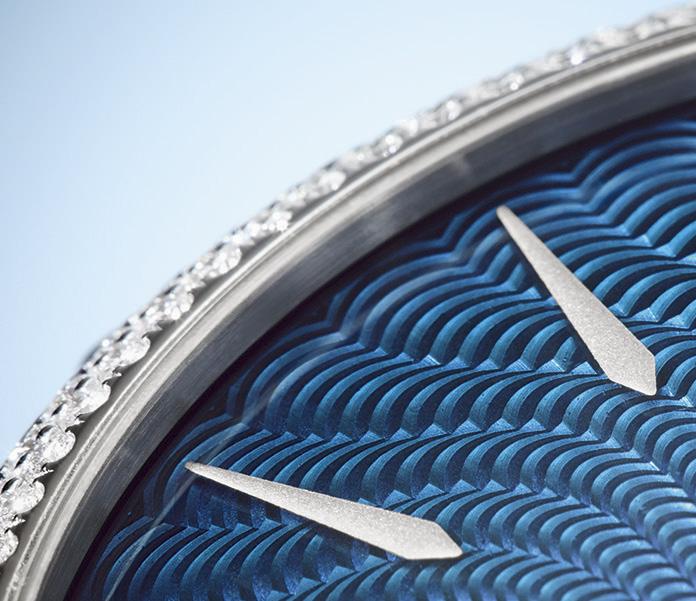 with a little more finesse. Ladies deserve more than just adding gems to a watch to make it worthy of their attention. The round case was slightly curved, making a more gentle silhouette, and the case size was 34mm, just right for the ladies’ wrist. The steel case has both brushed and polished surfaces that create a nice interplay of light.