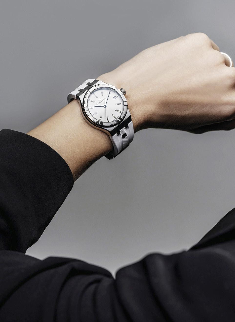 perfect urban-inspired timepiece, appealing to both Millennials and members of Gen Z by uniting the freshest urban style (like the six polished “arms” placed around the bezel, as well as the integrated bracelet usually consisting of five links) with Swiss precision while, most importantly, delivering high perceived value (read: very affordable).