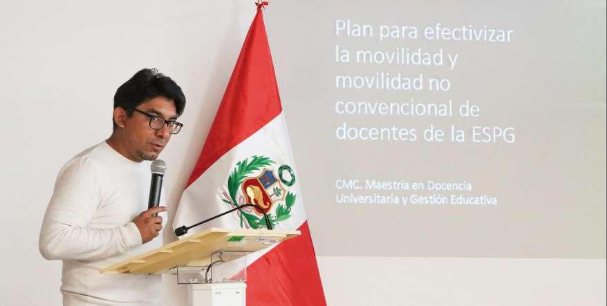 El Comité de Mejora Continua (CMC) de la Maestría en Docencia Universitaria y Gestión Educativa a través del Mag. Ricardo Jiménez Palacios presentó el “Plan para efectivizar la movilidad y movilidad no convencional de docentes de la Escuela de Postgrado de la UniversidadPrivadadeTacna”.