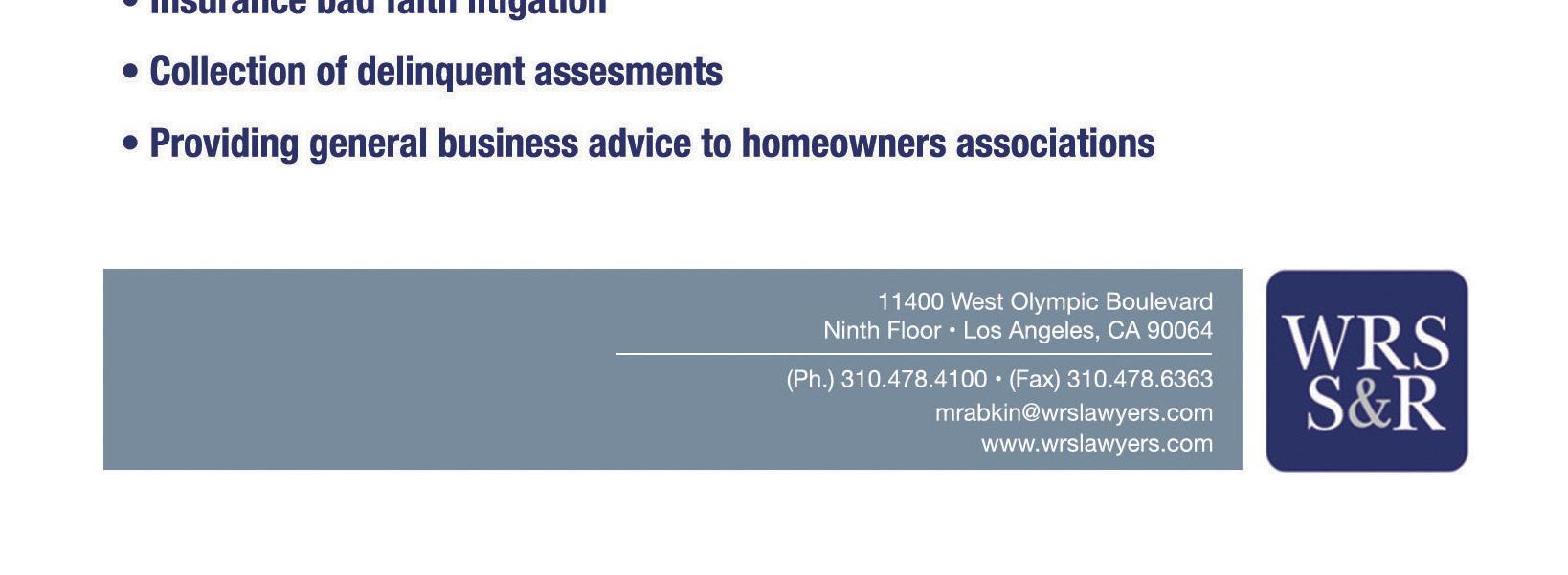 Los Angeles | Orange County | Palm Desert | San Francisco l Ventura 11900 W. Olympic Blvd., Ste. 700 Los Angeles, CA 90064 (800) 372-2207 • Fax (310) 207-2115 slg@sghoalaw.com www.lawforhoas.com