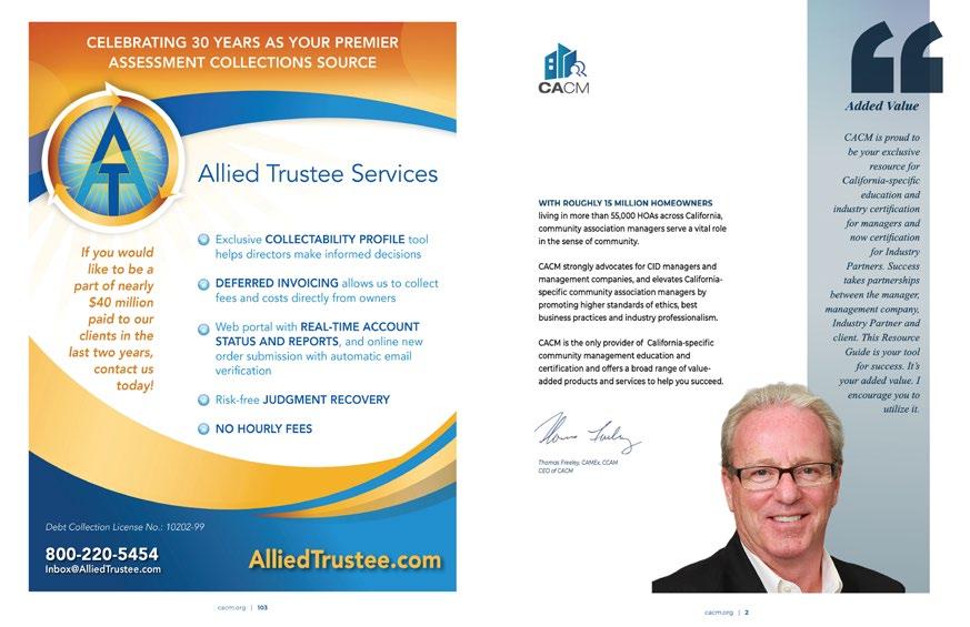 California Association of Community Managers, Inc. 23461 South Pointe Dr. | Ste. 200 | Laguna Hills, CA 92653 949.916.2226 | cacm.org