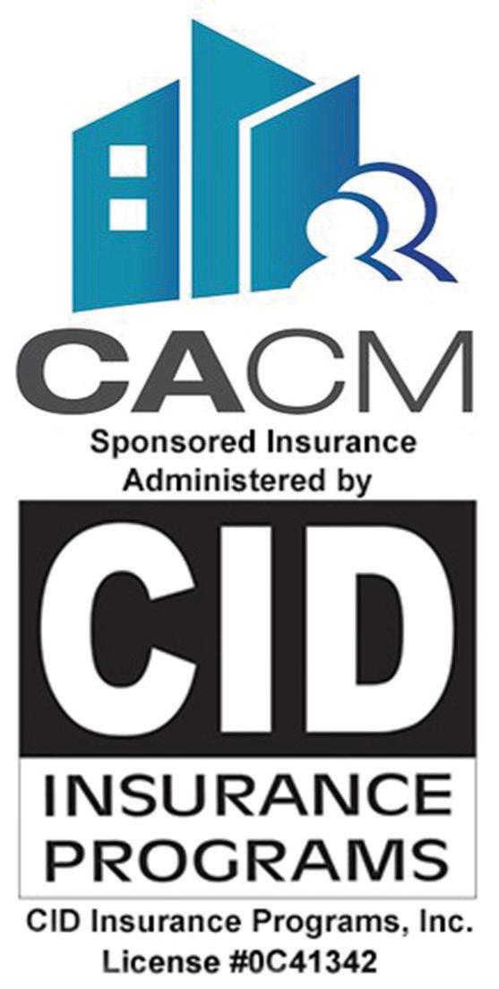 cacm.org | Vision Fall 2023 5 MANAGEMENT COMPANIES We are your best risk management asset CID Insurance Programs has successfully helped CACM Members with insurance & risk management protection for more than 23 years CACM Sponsored Insurance Programs f E&O Professional Liability f Employment Practices f Cyber Theft & Liability f Master Fidelity f Directors & Officers Liability f Business Office Insurance f Workers’ Compensation f Third Party Discrimination Phone: (800) 922-7283 Email: insurance@cacm.org www.cidprograms.com Don’t let business challenges bring you down...